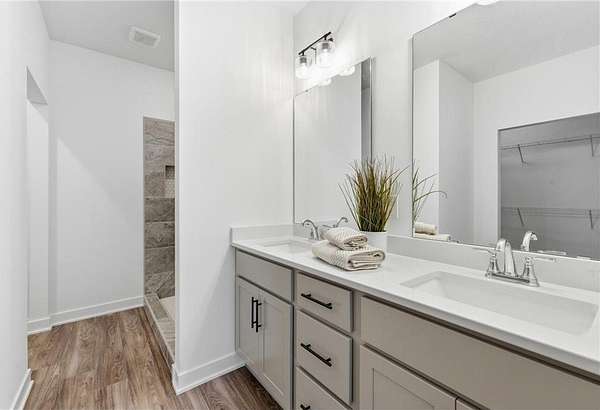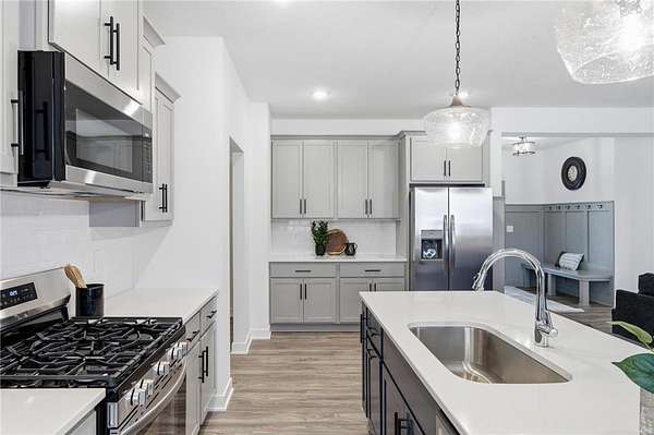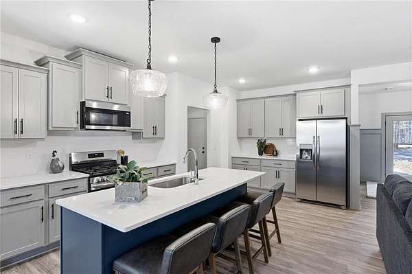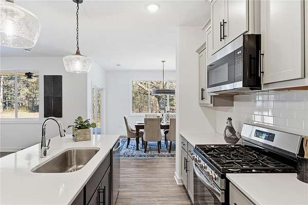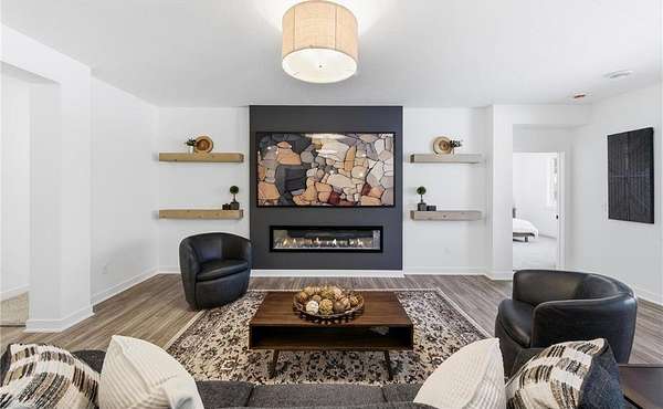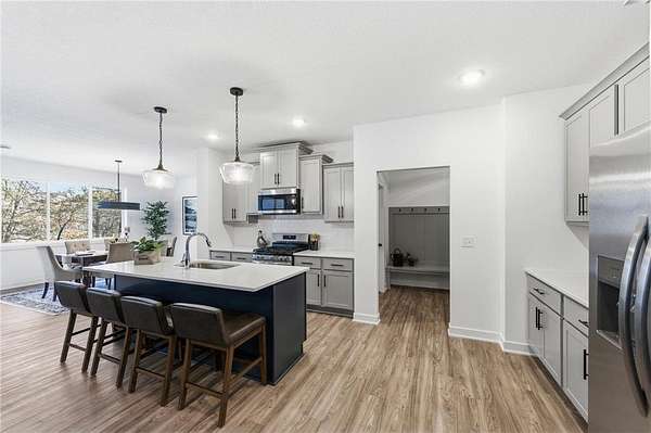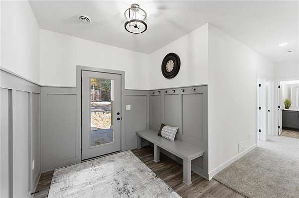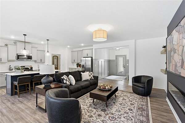 The chef’s kitchen is designed for both everyday living and entertaining. The private primary suite features a spacious walk-in closet and an ensuite bath with dual vanities. A main-level laundry room adds convenience and functionality.