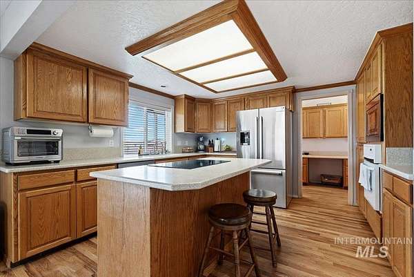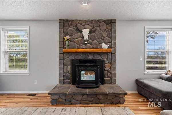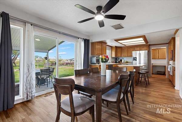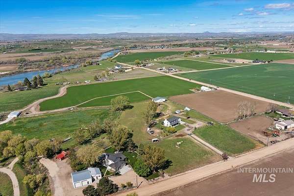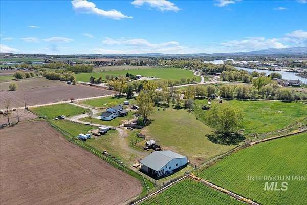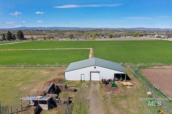 Your Idaho Dream Home awaits! Located in desired Homedale School District, this beautiful small hobby farm home comes with 5 irrigated acres with K-line irrigation pods, while already fenced and prepped for your livestock to start enjoying the farm life! Chicken coops, green pastures, and healthy living is in your destiny with this home! Bring your livestock and horses! Store all your equipment and toys in the 40 X 40 shop with 10 x 40 lean-tos on each side for extra room for hay or animal shelter. Fruit trees throughout the property and garden area ready to start the garden season. Enjoy the home with recent updates inside and out including, gutters, soffit, and insulated vinyl siding, HVAC, irrigation pump, sliding glass door, & induction range to name a few. With 4 large bedrooms, a flex room and open floor plan, this home has space inside and out for plenty of entertaining! Close to Snake River, River Bend Golf course and the new Homedale D & B, it is ready for its new owners!