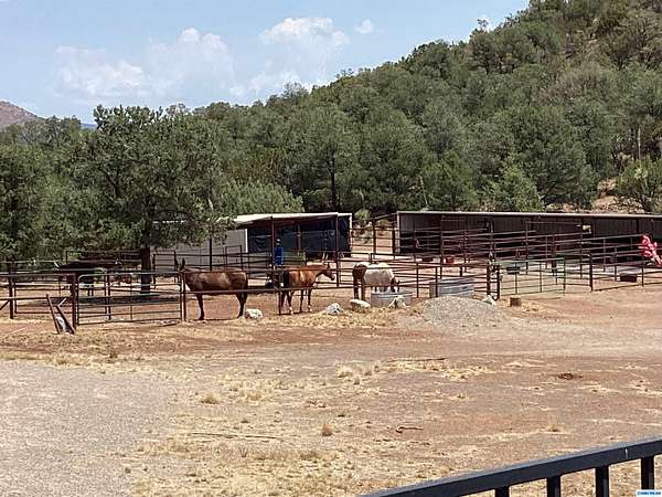 Exceptional 40-Acre Horse Property Bordering the Gila National Forest! This rare offering combines the comfort of a well-designed home, with on-grid solar and everything needed for horses & country living. Step outside to find a fully fenced property with 6 sheltered stalls with electricity and water, 3 separate covered stalls with water, a round pen, and 3 acres of night pasture - all ideal for horse enthusiasts. Priceless is the location as it borders the Gila National Forest and has great trails into the forest, incl Gomez Peak & 10 minutes from town The beautifully maintained 3 BR/3 BA home is fenced and features 2 separate primary suites, central air and heat.. A reverse osmosis system is installed under the kitchen sink for added water purity, and a one-car garage door in the basement provides added functionality. Solar has a DC pump with a switchable grid connection. If you're a business, an avid equestrian or simply looking for a peaceful retreat, this property is for you.