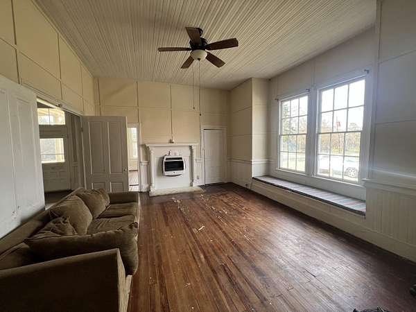 Step back in time and imagine the possibilities with this charming 1940's farmhouse situated on 1.79 acres in the heart of downtown Tignall. Rich with character and timeless appeal, this home offers the perfect opportunity for restoration and customization. With a little vision and care, it can be transformed into a stunning blend of historic charm and modern comfort. The inviting front porch welcomes you with two separate entrances--one leading into the living room and the other into what could be a dedicated office space--adding both character and functionality. Inside, you'll find generously sized rooms ideal for everyday living and entertaining. The home features 3 bedrooms and 2 full baths, providing ample space for family, guests, or flexible use. Outside, the fenced acreage is well-suited for those seeking a mini-farm lifestyle. The property includes a 25x25 barn, chicken coop, and a large storage building, offering excellent space for animals, hobbies, or equipment. Established fruit trees, including peach and mulberry, add to the property's charm and self-sustaining appeal. If you're dreaming of a quieter pace of life while still enjoying the convenience of a downtown location, this unique property offers endless potential to create something truly special.