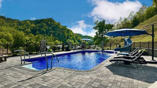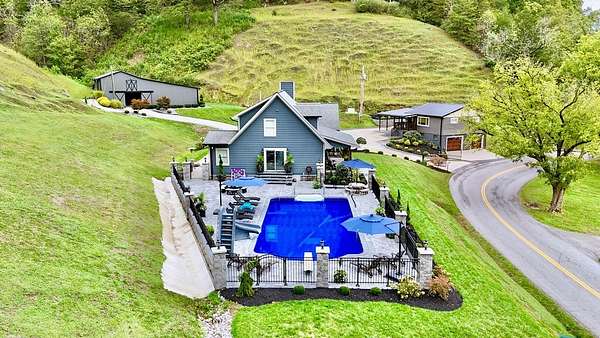 Welcome to your own majestic retreat in the bluegrass state. The main home includes 3 bedroom, 2.5 bath walk-in executive closet, ensuite bath, office, laundry room, and one of the attached two-car garages with direct entry with 45 (+/-) Acres. You will be greeted with Features such as an electric gate entry, beautiful landscaping, a 2 story barn, a bold castle-like courtyard complete with a 20X44 pool, and gorgeous hardscape! Property comes with a 2nd 2 bed/1 bath home with 2 car garage that can be used for rental property or mother in law suite. 5-10 Mins to Jenny Wiley State Resort Park, 17 mins to ARH, 26 mins to PMC.