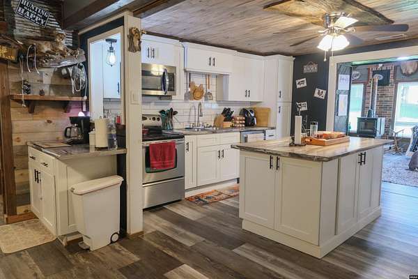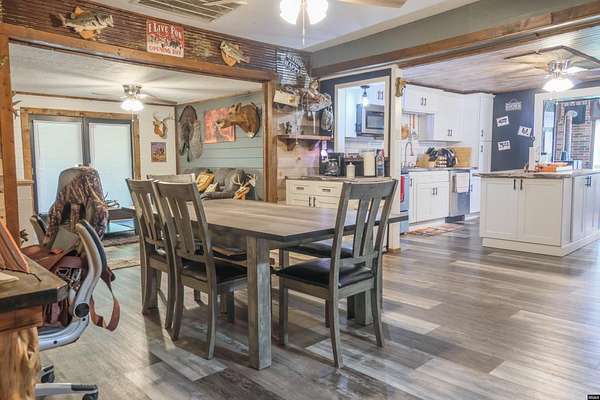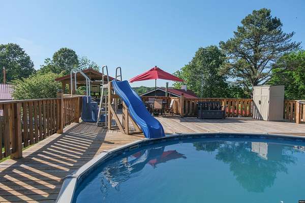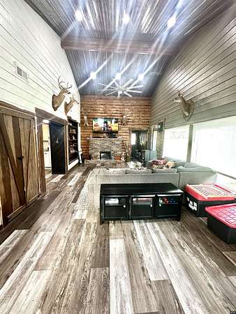 Est $2,422/moDiscover your oasis! This exceptional property boasts an array of impressive features.Starting with 4 bedrooms, 2 baths, 2 living rooms, and walk-in closet. A 1600 sq. ft. deck offers breathtaking views of the pool and stocked pond. A 1600 sq. ft shop features a 600 sq. ft. finished insulated room. A 1200 sq. ft. shop, heated and cooled, includes a full-size gym. The property also includes a fenced backyard, above-ground storm shelter, chicken coop, and is perfectly situated on 5.2 acres. Absolute must see