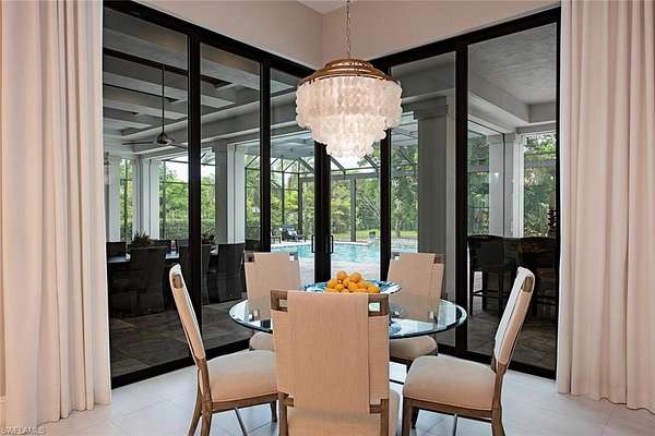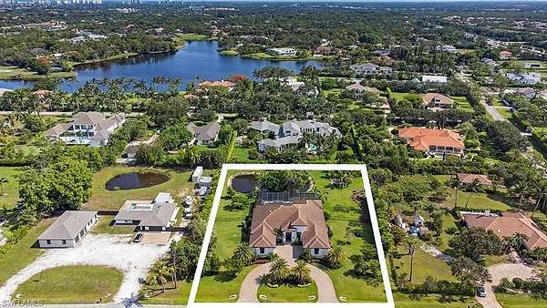 179 Mahogany Dr., a magnificent residence located in the prestigious Pine Ridge Estates. Situated on a 1.51-acre fenced lot. No expense has been spared in creating a luxurious atmosphere, with top-of-the-line features and finishes throughout. The gourmet kitchen is a culinary enthusiast's dream, equipped with Jenn Air appliances, an expanded island, and plenty of cabinet space. The interior design of this home is wonderful, with custom ceilings, crown molding, and attention to detail evident in every room. The master bedroom is a sanctuary of tranquility, featuring spacious walk-in closets and a large master bathroom. For those who appreciate a work-from-home environment, the study is equipped with built-in wall cabinetry and an adjacent wet bar, creating a functional and stylish workspace. The outdoor amenities of this home are equally impressive, allowing for a seamless transition from indoor to outdoor living. The covered lanai provides a shaded retreat, while the outdoor kitchen with grill and bar invites you to entertain in style. The heated salt pool and spa provide a refreshing escape, while the gas-raised fire feature adds a touch of ambiance.