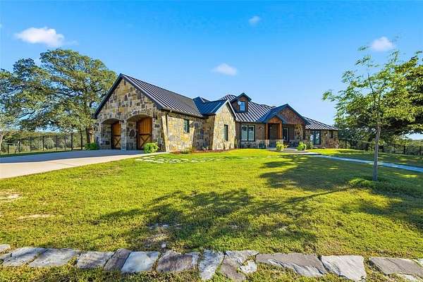 Experience luxury, country living at its finest in this custom-built home on 10.1 picturesque acres. The main house offers 3,034 sq. ft. of living space while the guest house adds 1,260 sq. ft., for a combined 4,294 sq. ft. Thoughtfully designed and built in 2016, this property offers beauty, functionality, and craftsmanship at every turn. The land is ag exempt, fenced and cross-fenced with a lean-to for livestock, complete with scenic trails, a dry creek bed, and a waterfall that flows during wetter seasons, creating a truly serene backdrop.