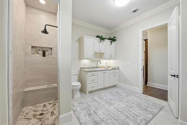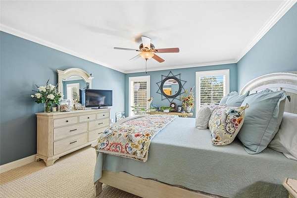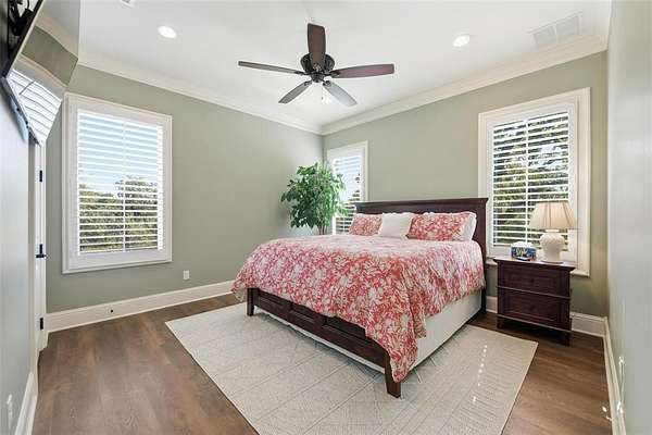 Inside, the 3-bedroom, 3-bath main home features an open floorplan filled with natural light and oak hardwood floors throughout the main living spaces. Spacious secondary bedrooms have walk-in closets and a jack-and-jill bath. The study is ideal for remote work, boasting custom built-ins and abundant shelving.