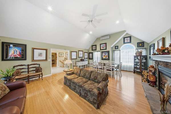 Warmth, comfort & space in the Hudson Valley. Welcome home to this spacious Colonial on 2.8 acres offering 3-4 bedrooms, 2 full baths, and a detached 2-car garage with oversized loft. The heart of the home is the large family room - cathedral ceilings, a stunning stone fireplace, and beautiful hardwood floors - the perfect place to gather. The private second-floor primary suite has its own full bath and walk-in closet. Outside, entertain like a pro. A huge rear deck leads to your own private sand beach and an above-ground pool - a dream setup for weekend BBQs, celebrations, or quiet relaxation. The detached 2-car garage easily fits larger vehicles, and the large loft above makes a fantastic work-from-home office or studio space. Expansive yard space offers room for pets, gardening, or play - plenty of outdoors to enjoy. Two large driveways, one on each side of the house, provide easy parking and convenience. Just 10 minutes to major highways, supermarkets, the Galleria Mall, and Garnet Medical Center. Live the Hudson Valley lifestyle - so much to do, so close to everything. Easy to show. Schedule your private tour today.