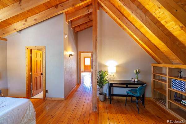 Step onto the wraparound deck and you’re immediately in it — moose and elk moving through the pines, the lake just below, the silence that only comes with true acreage. Walk down to the water for a morning of fishing or simply let the setting do what Colorado does best. The detached two-car garage with a loft adds storage, flex space, and practical value for owners and guests alike.
