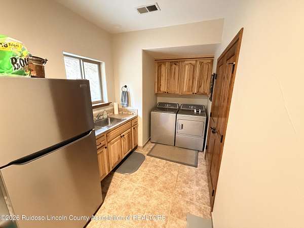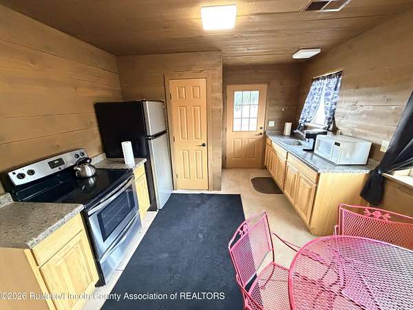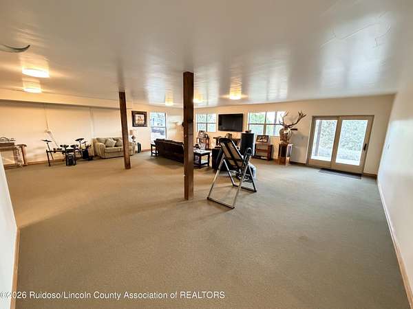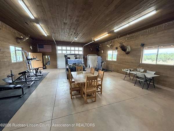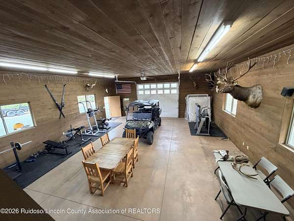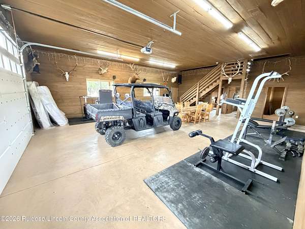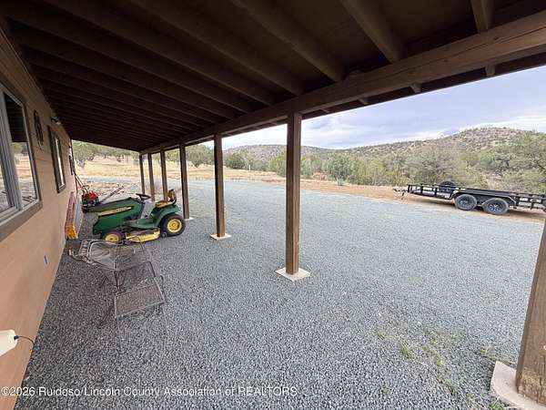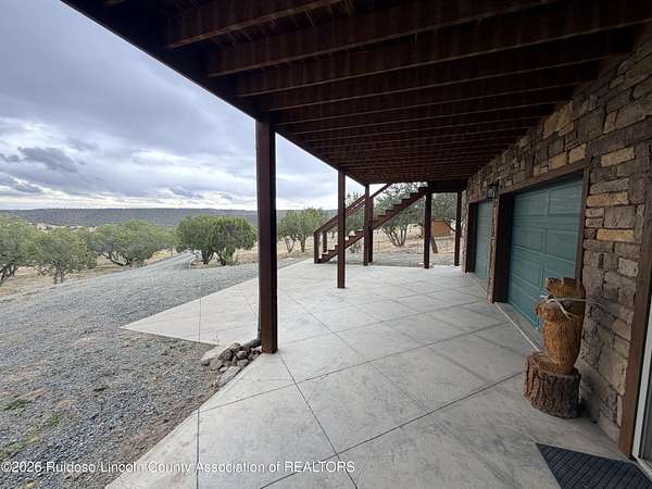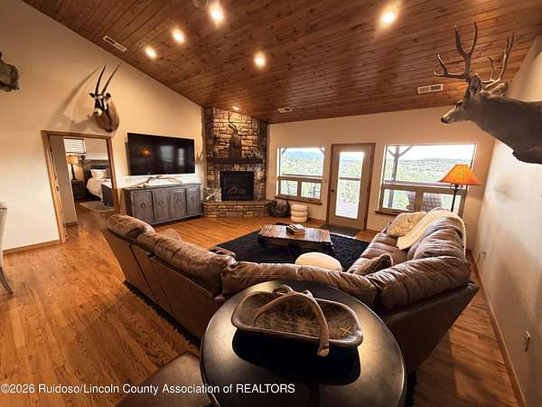 GATED SUBD/27.3 ACRES/NEAR BLM LAND!!! Classy custom mountain, low maintenance style home. Another Ratliff custom home with adjacent additional approx 1,700 sq.ft barn-guest quarters. Home and barn-guest qtrs. are hardie plank siding accented with stone. Main home offers an open kitchen, dining and living with 3BDR/3BA with a spacious covered deck and split bdr plan offering great views to the Capitans and BLM.Vaulted wood ceilings, stone gas log fireplace, a double extended 35 foot garage and a spacious hobby-family room. The spacious downstairs could also offer room for more bedrooms. The barn/guest quarters has a full kitchen, full bath, loft bedroom, laundry room and open space for more hobbies, toys or to convert into a guest qtrs. Horses allowed.