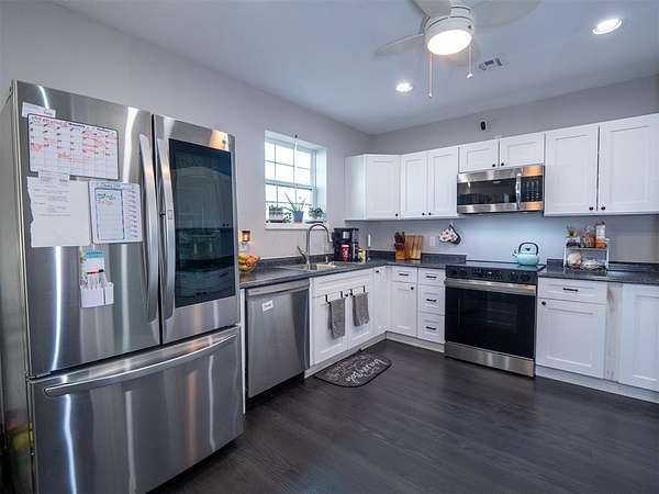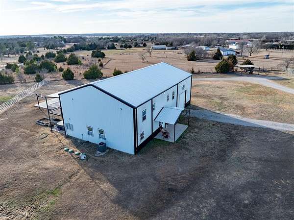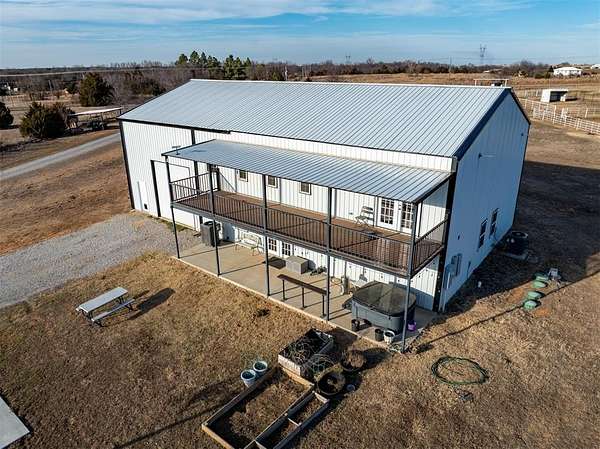 Welcome to your fully functional horse property and barndominium residence. With nearly 3,600 square feet of living space, this impressive barndo offers 4 bedrooms, 2.5 baths, soaring ceilings, and room to breathe inside and out. Step inside and immediately feel the scale and openness. The spacious kitchen flows seamlessly into a large dining area, perfect for hosting family and friends. The primary suite is conveniently located downstairs, while three additional bedrooms upstairs provide plenty of room for family or guests. You'll also find a dedicated theater area and access to the expansive second-story covered deck - an ideal spot to unwind, take in Oklahoma sunsets, and enjoy the peaceful sounds of nature. Attached to the home is a massive pull-through garage complete with storage space and a workout area, making this property as practical as it is impressive. Outside, the equestrian setup is ready to go: a 3-stall horse barn, round pen, four paddocks, and three income-producing RV hookup spaces. The entire property is fully fenced and gated with a large circle driveway for easy access and maneuvering. Location matters - and this one delivers. You're just minutes from the Kickapoo Turnpike entrance at Britton Road and just east of Remington Park, giving you quick access to the metro while maintaining the freedom and privacy of country living. If you've been looking for a property that works as hard as you do, this is it.