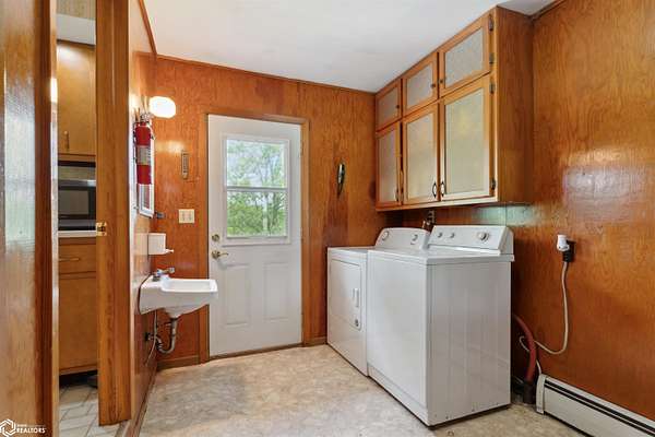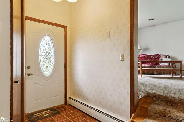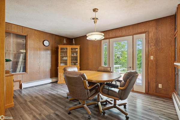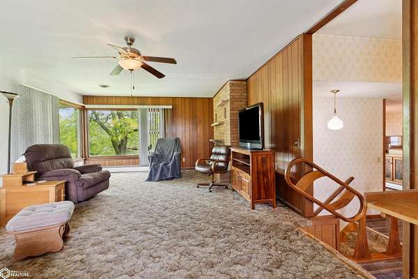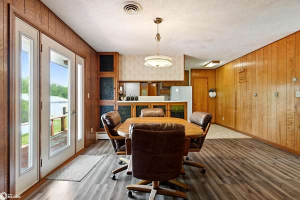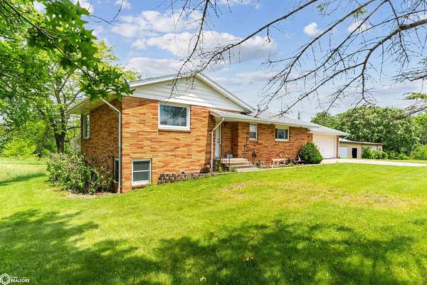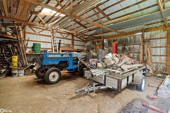 39.36 acres located 6 miles north of Mount Pleasant, this single owner 3 bedroom/2 bathroom home is ready for a new owner to experience its many outdoor adventures. Fishing, hunting, walking trails to the creek, nut/fruit trees, barn, and climate controlled shop on one mile of gravel is a rare find! The main level primary bedroom shares access to the main level bathroom. Dining room leads out to the poured patio. Living room includes one of the two fireplaces and has large windows that overlook the pond. The main level laundry room connects the kitchen to the garage. Lower level includes two bedrooms, a bathroom, game room with fireplace, and storage rooms. Old wood boiler room has access to backyard. In total, there is over 2,600 sqft! New septic has been installed. Selling as is. Come see this beautiful property in person!