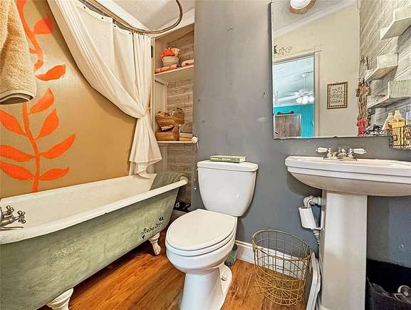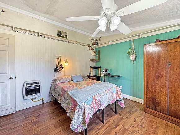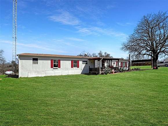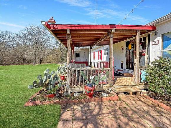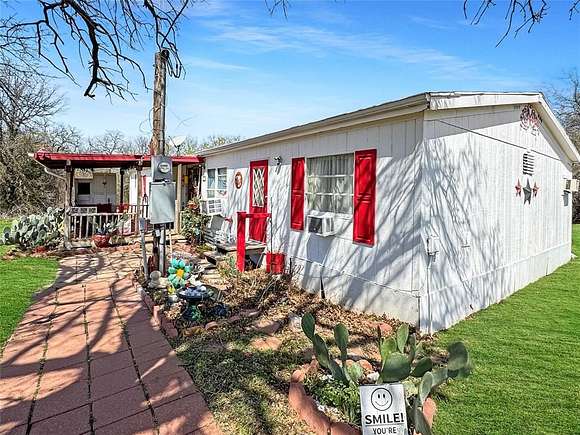 Amazing opportunity to own a secluded 5ac property near parker county! The land is half wooded and half cleared which adds to your privacy and is immediately ready for your vision to come to life. The cleared portion has a livestock shed, chicken coop, workshop with 110 and 220 amp power and 1 acre completely fenced in for livestock. The home has a double subfloor and updates including plumbing and gas lines for the heaters and the foundation has just been leveled. Enjoy your peace and bring your personal touch to this artsy home, which also includes a personal internet tower and catio! Home is being sold as-is and price reflects any repairs that may be desired. Appliances, built ins, outdoor furniture and firepit can all go with the sale of the property. Only 30 minutes from Weatherford and 20 minutes from Springtown!