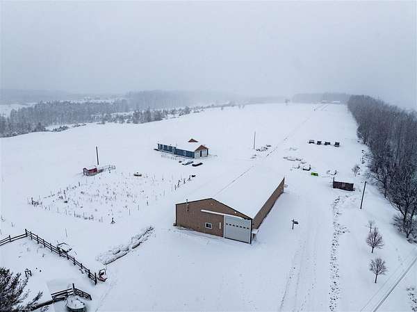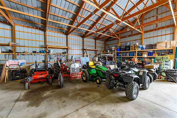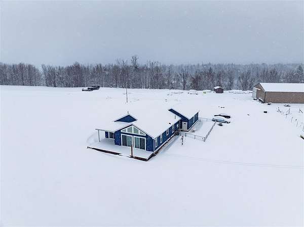 Experience the perfect blend of modern luxury and rugged utility on this expansive 21.69-acre estate. Completed in 2021, this 3-bedroom, 2-bathroom home offers a seamless "like-new" living experience with a focus on high-efficiency systems and unparalleled outbuildings. Whether you're an automotive enthusiast, a hobby farmer, or someone seeking total peace of mind, this property delivers on every level. Designed for comfort and efficiency, the home features a spacious open floor plan with high-end finishes throughout. The climate is perfectly controlled via a state-of-the-art heat pump system with a forced-air backup, ensuring year-round comfort regardless of the weather. Peace of mind comes standard with a full-home generator system, keeping your lights, appliances, and HVAC running even when the grid goes down. The true showstopper is the massive 54x96 pole barn. Inside, you'll find a 30x32 fully heated workshop equipped with a truck lift, an absolute dream for someone who likes to work on their own cars. There is also an additional 12'x16' shed and 8'x10' chicken coop next to the fenced in garden to complete this stunning estate.