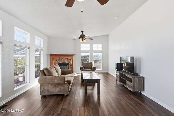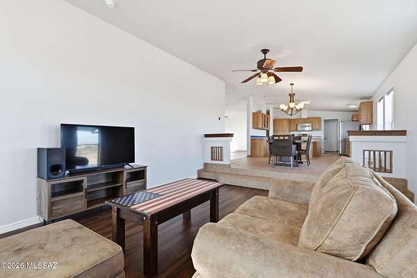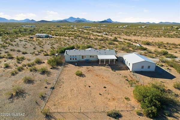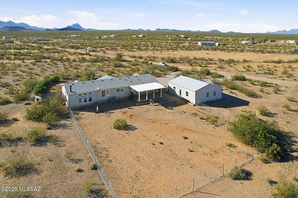 Set on 8.2 acres across two parcels and zoned for horses, this private desert retreat is defined by its expansive outdoor living and sweeping 360-degree mountain views. There is ample space for riding, animals, gardening, or simply enjoying the quiet of the open desert. Inside, the 4-bedroom, 2-bath home showcases custom woodworking, a statement fireplace, and a welcoming sunken family room. The open kitchen features a large multi-level island, walk-in pantry, and abundant storage. The primary suite offers dual sinks, a soaking tub, and separate shower. A detached four-car garage/workshop complete this rare blend of craftsmanship, privacy, and land. This is one not to be missed. Roof replaced in 2022! HVAC was replaced in 2019! 120/220 electrical in Garage for all your tools or for an RV.