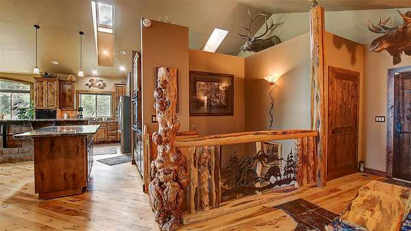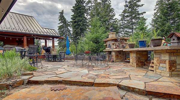 Own this custom-built Montana home on 20 acres with the option to purchase another 20 acres adjoining this parcel! (MLS # 30055555) This private retreat offers the best of both worlds where modern comfort and rustic charm intertwine. Located 18 miles North of Missoula. For those who like to spend time outdoors, the fun starts here! There is custom hardscaping everywhere you look. Make a pizza in the outdoor pizza oven, play horseshoes or hang out with friends in front of the Rumford Fireplace or firepit. Or simply sit on the deck or porch and watch wildlife, listen to the wind in the trees and relax. Wherever you are on this property, you will be amidst natural beauty, views for miles and quiet solitude. 2522sf of high-end, main floor living with a huge open concept great room and chef's kitchen. Not only is the kitchen beautiful with Alder cabinets and granite counter tops but it functions easily with several prep areas and a beverage bar. Vaulted ceilings and windows throughout bring in natural light. Hickory wood floors compliment the extensive rock fireplace that houses an indoor pizza oven. The luxurious primary bedroom and bath with gas fireplace, soaking tub, walk in-shower along with second bedroom, bathroom and convenient office are all located on the main floor. Just in case you need more room to spread out, the daylighted basement offers another 2162sf of well laid out living space. A large family room with a bank of storage closets, an additional bedroom, bonus room, bathroom, large storage room AND a built-in shop with outside utility door.