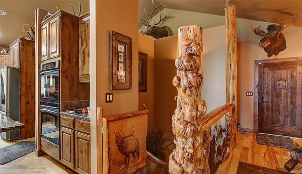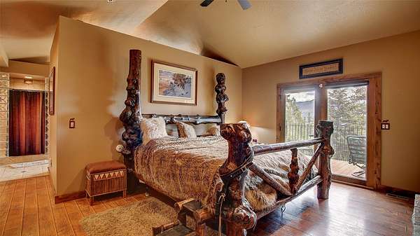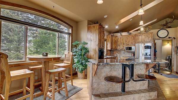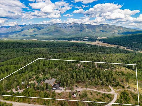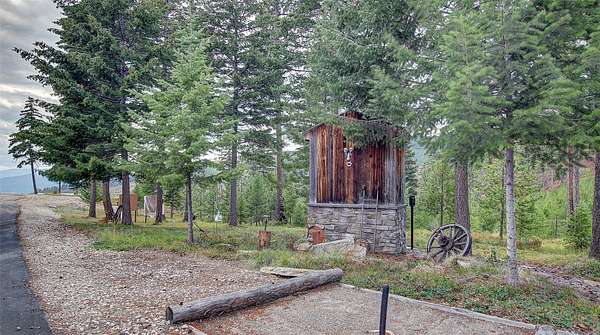 Own this custom-built Montana home on 40 ACRES WITH TWO PARCELS. This private retreat offers the best of both worlds where modern comfort and rustic charm intertwine. Located 18 miles North of Missoula. For those who like to spend time outdoors, the fun starts here! There is custom hardscaping everywhere you look. Make a pizza in the outdoor pizza oven, play horseshoes or hang out with friends in front of the Rumford Fireplace or firepit. Or simply sit on the deck or porch and watch wildlife, listen to the wind in the trees and relax. Wherever you are on this property, you will be amidst natural beauty, views for miles and quiet solitude. 2522sf of high-end, main floor living with a huge open concept great room and chef's kitchen. Not only is the kitchen beautiful with Alder cabinets and granite counter tops but it functions easily with several prep areas and a beverage bar. Vaulted ceilings and windows throughout bring in natural light. Hickory wood floors compliment the extensive rock fireplace that houses an indoor pizza oven. The luxurious primary bedroom and bath with gas fireplace, soaking tub, walk in-shower along with second bedroom, bathroom and convenient office are all located on the main floor. Just in case you need more room to spread out, the daylighted basement offers another 2162sf of well laid out living space. A large family room with a bank of storage closets, an additional bedroom, bonus room, bathroom, large storage room AND a built-in shop with outside utility door.