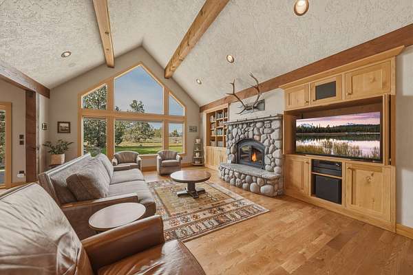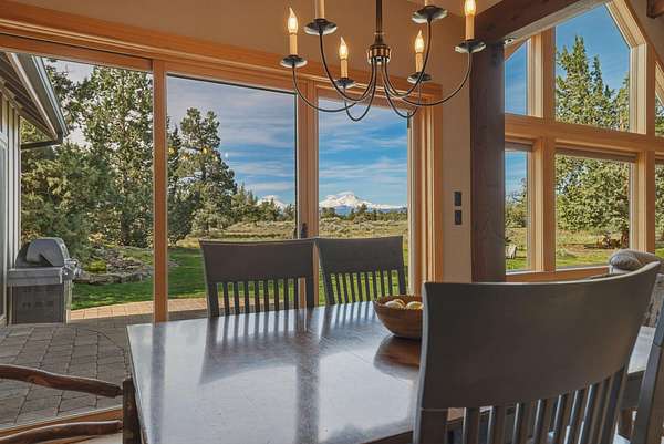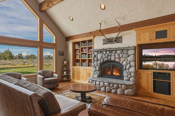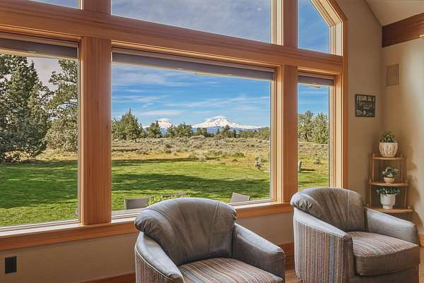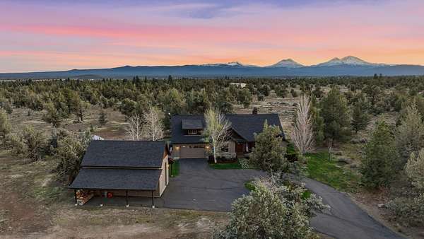 Wake up to unobstructed views of the Three Sisters from your own 5-acre private retreat. No HOA, no CC&Rs, just the peace and seclusion Central Oregon living is all about. Custom built and designed to capture every angle, the floor-to-ceiling windows frame those iconic mountains beautifully and fill the home with natural light. 3/bed & 2/bath on the main level, plus a dedicated office that could easily serve as a 4th bedroom. Upstairs, a spacious bonus room with its own full bath and complete privacy functions beautifully as a 5th bedroom, second primary, guest suite or hobby room, and is the only room on the upper level. Step outside and you'll find a peaceful water feature with fish. A long list of updates include all new appliances, tankless water heater, wired for generator, mini-split in the bonus room, new windows, fresh interior and exterior paint, and more. 18x32 heated & finished RV/shop w/side overhangs and upper storage. Circular driveway. Sisters School District.