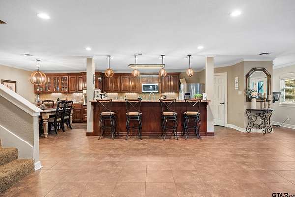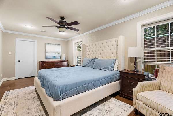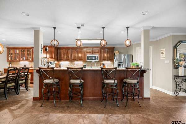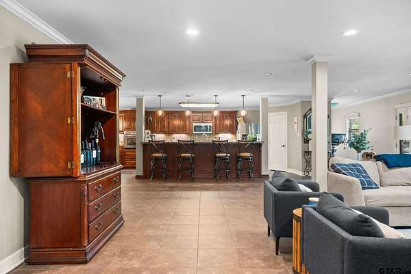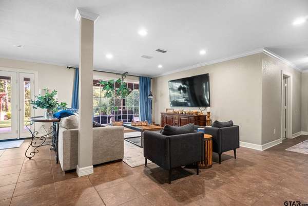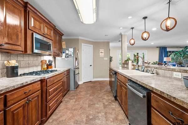 Nestled just outside of Whitehouse and minutes from Lake Tyler, this stunning property offers a rare blend of privacy, space, and charm. Set on over two wooded acres with access to a great pond and mature trees, it delivers the tranquility of country living with the convenience of nearby amenities and schools. The custom-built barndominium-style home welcomes you with open living spaces, soaring ceilings, and an abundance of natural light. Inside, you’ll find five spacious bedrooms, three bathrooms, a cozy living area, and a well-appointed kitchen featuring stainless steel appliances. The oversized primary suite offers luxurious finishes and comfort, while bonus rooms provide flexible options for a home office, gym, or playroom. Nearly every room in the house enjoys views of the expansive backyard. Step outside to enjoy a beautifully landscaped setting with an inviting pergola-covered patio, perfect for entertaining. A generator provides peace of mind, while the lush surroundings and stone patio offer the perfect backdrop for relaxation. This is a one-of-a-kind opportunity to enjoy serene, spacious living year-round. Pictures were taken when home was staged, vacant now - easy to show.