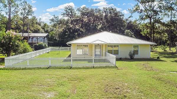 Country Living at its finest. Freshly painted and updated, split plan, 3 bedroom/ 2 bath, concrete block / Hardi board home with metal roof on 7.82 acres. Recently updated kitchen featuring hickory cabinets, black stainless-steel appliances, solid surface Corian countertops, and pressed aluminum backsplash. The bedrooms are of ample size and have plenty of closet storage along with crown molding. Large Livingroom sits in the front of the home and opens into a dining room area next to the kitchen. The home also has a screened in porch and a deck area for grilling. RV hangar with power for a large 5th wheel style RV and a workshop with power and car ports. An additional storage building is available to store a tractor or another car. A greenhouse is also included with the property. Meyer Lemon, orange, and fig trees have been planted. Other updates include a new well approx. three years ago, Roof in 2017 and the AC in 2010. Schedule your showing today.