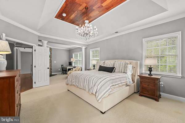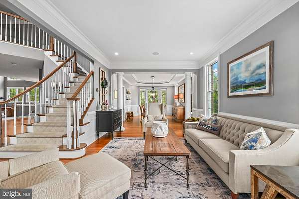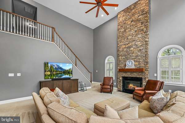 Welcome home to 17926 Skip Away Ct. Nestled on a picturesque and private 3-acre wooded homesite in a prestigious estate community, this stunning home offers the perfect blend of serene seclusion and everyday convenience just minutes from downtown Leesburg. This exceptional luxury residence features over 6,000 square feet of beautifully designed living space, including 5 bedrooms and 4.5 baths. Thoughtfully crafted with a bright open-concept layout, the home showcases soaring ceilings and expansive windows that fill the space with natural light. The spacious gourmet kitchen features a large island, classic white cabinets, granite counters and stainless appliances. Flows seamlessly into the inviting two story family room with a floor to ceiling stone fireplace and large picture windows. Rounding out this level is a formal dining room with a tray ceiling, a spacious living room, a private office, and a versatile front den or playroom highlighted by charming rounded windows. A conveniently located laundry room and mudroom add to the home's functionality and everyday ease. All of this creates an ideal setting for both everyday living and elegant entertaining. The upper level features four generously sized bedrooms, including an impressive primary suite with a tray ceiling accented by wood inlay. The suite also offers a private sitting room with a fireplace, a spacious en-suite bath with a soaking tub, separate walk-in shower, and dual vanities, as well as a large walk-in closet with built-in organization. Three additional bedrooms provide ample space, with one offering a private en-suite bath and the remaining two sharing a well-appointed bathroom. The lower level offers a versatile recreation room, perfect for entertaining or relaxing, along with a fifth bedroom featuring walk-out access to the patio. A full bathroom on this level adds convenience, making it an ideal space for guests or extended living. Step outside to enjoy the ultimate outdoor lifestyle with a large deck and patio complete with a fully equipped outdoor kitchen-perfect for hosting gatherings. Relax and unwind in the new hot tub while taking in peaceful wooded views, offering a true private retreat in one of Leesburg's most desirable estate communities. Some recent updates include upper level hvac is 1 year young, new carpet in family room and bedroom level. Hardwood is in the upper level hallway too. Mortgage savings may be available to buyers of this listing.