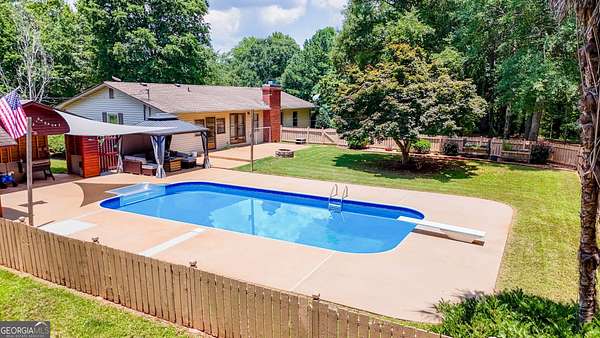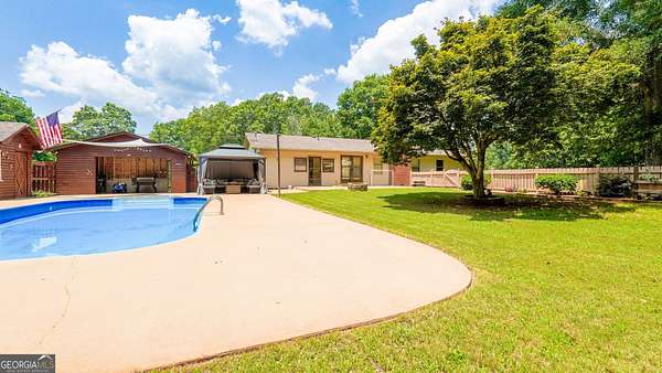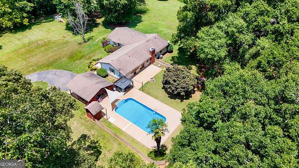 31.65 +/- private acres! Awesome sprawling one level ranch offering 4 bedrooms and 3 full baths with awesome outdoor space, including multiple porches, an inground pool, great patio space, covered grilling area, and a huge barn/shop with room for your future mini-hobby farm! Wind down your drive to a beautiful setting - the home is not visible from the road! Living areas include a formal foyer entrance, a large family room with fireplace that opens to the dining area, and a spacious kitchen. The spacious 480 +/- square foot master suite features a private deck, where you can enjoy gorgeous views of your property. The suite also boasts a luxurious in-room jacuzzi tub for ultimate relaxation, an ensuite bath with tile floor, an oversized tile shower, large vanity, and a big walk-in closet. One of the secondary bedrooms includes a private bath, making it ideal for a teenager or second master suite. On the opposite end of the home, there's a secluded 4th bedroom that's perfect for a private home office if needed. The home showcases stunning hardwood floors and updated tiled bathrooms throughout. The updated kitchen is equipped with solid surface countertops, plentiful cabinetry, and stainless-steel appliances. In addition there's a full size laundry room and an additional mudroom coming off the pool/outdoor area. The inground pool area is a dream for entertaining, with a pergola area, plentiful concrete patio space, and a covered space off the backside of the carport that faces the pool that's perfect for grilling and gathering. The pool area & immediate backyard area is fenced in. There's a small firepit and homemade wood fire pizza area too. A charming 6x8 pool pump house offers convenient storage for pool supplies. The front of the home offers a huge deck and a separate private deck from the master suite. Additional features include a 16x24 barn with concrete floors and electricity, numerous chicken pens/livestock areas, and a 12x24 storage building with power. A secluded loop asphalt driveway leads to a carport with parking for two. The acreage is absolutely gorgeous and has trails for riding and enjoying. Quiet rural location just outside of Thomaston. This rare property is a must-see!