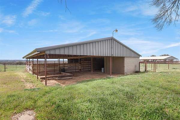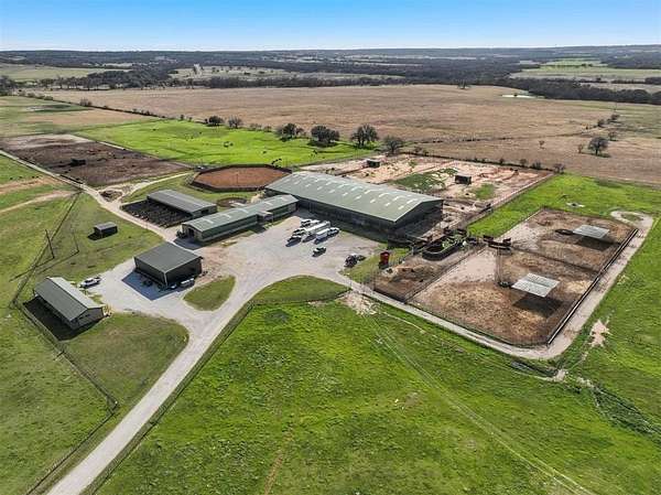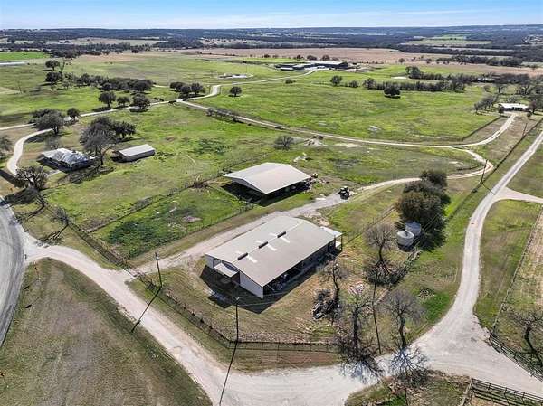 Income producing Equestrian and Cattle Property in the heart of cowboy country with multiple residences, two large homes, one apartment, and a four bed four bath bunkhouse. Covered arena, 37 stalls, outdoor arena, and working cattle pens. Previous home to Kasen York Performance Horses. This premier equestrian property spanning 123+- acres, just one hour west of Fort Worth. Perfectly blending residential comfort with professional grade equestrian and cattle facilities, this property offers an exceptional opportunity for horse enthusiasts or professional trainers. Residential features include two recently updated homes, ideal for hosting guests, accommodating staff, or enjoying your own private living quarters, new apartment with one bedroom 1.5 bath, bunkhouse with four private rooms and laundry. Equestrian facilities include two Barns with 37 total stalls, additional pens and traps, cattle lanes, outdoor 150 ft octagon arena, covered arena 120x250, new 8 horse walker covered, restroom, and washroom, perfect for hosting events or competitions. Additional features, equipment barn-hay and large shop for secure storage. RV hookups. Two ponds adding both natural beauty and functionality to the property. This property is more than a ranch--it's a fully equipped equestrian paradise with endless potential. Whether you're looking to host events, train professionally, or enjoy a private retreat, this property delivers the perfect balance of lifestyle and functionality. All ranch equipment negotiable; cab tractor, arena drag, skidsteer, two side by side atv's, and manure spreader.