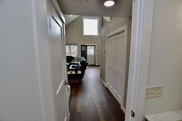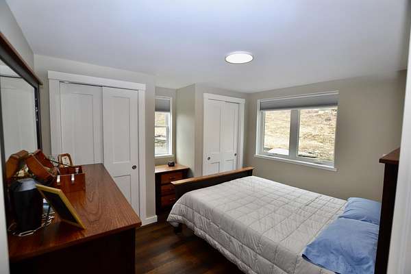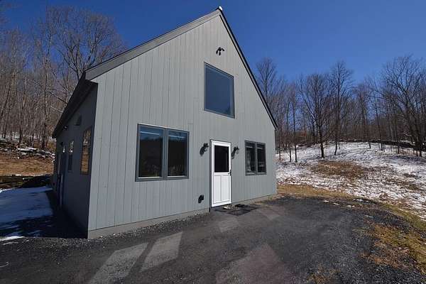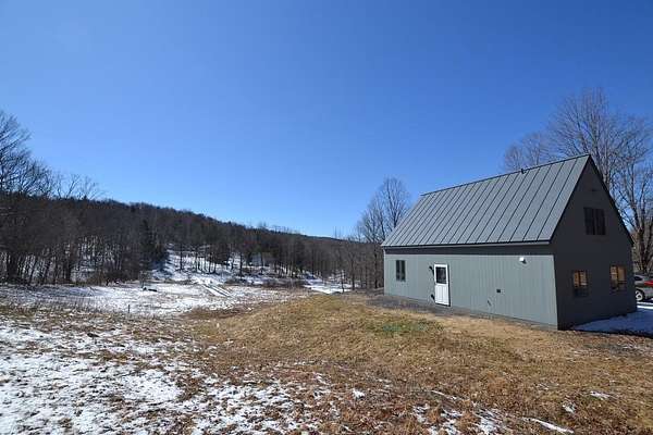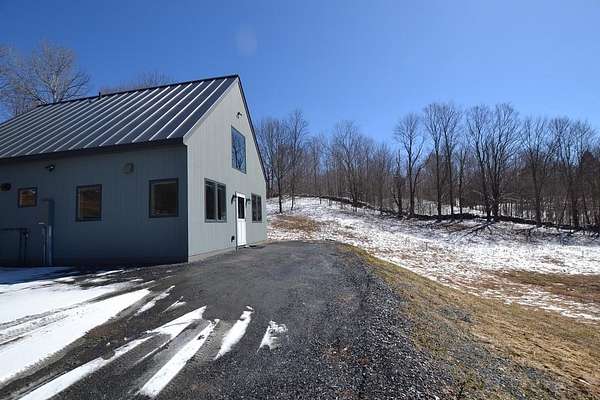 Built with purpose in 2023, this well designed house sits on 7.7 acres of good land surrounded by stone walls and mature trees. In winter the south facing windows bring in light warming up the concrete floors. In summer the remote control shades allow the floors to stay cool. The kitchen is big and bright, open to the dining and living area. The downstairs bedroom sits on the other side of a large closet next to the bathroom where the laundry is. Upstairs the loft space offers an additional bedroom or office. The thoughtful modern design and high quality craftsmanship should allow the next owners to spend their time enjoying the property. Located in Central Vermont on a hill just outside of Northfield this property offers a country setting yet lies just 2.5 miles from 89.