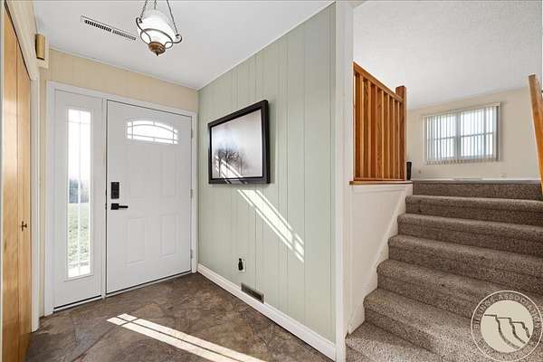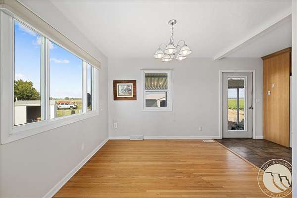 Highway 312, Left on North 4th Road in Huntley. House is on the left.