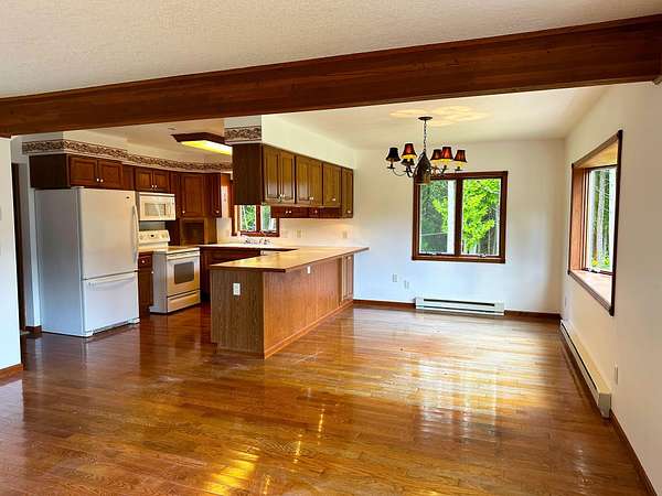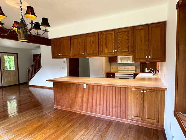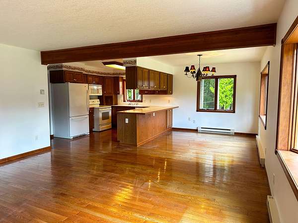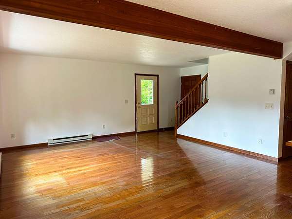 This well built home has everything you're looking for, lots of room to spread out, easy first floor living and quality throughout. It is close to town but nestled on a quiet road. Move in at closing! The interior has been completely repainted and carpet has been removed from all rooms. Conveniently have your new flooring choice installed before you move in. The first floor offers a open concept living/dining/kitchen space with large, bright bay windows, a large bedroom, 3/4 bath and an additional family room space that opens out to the back yard. Upstairs you will find a roomy & comfortable sitting area between 2 large bedrooms & an additional bathroom.