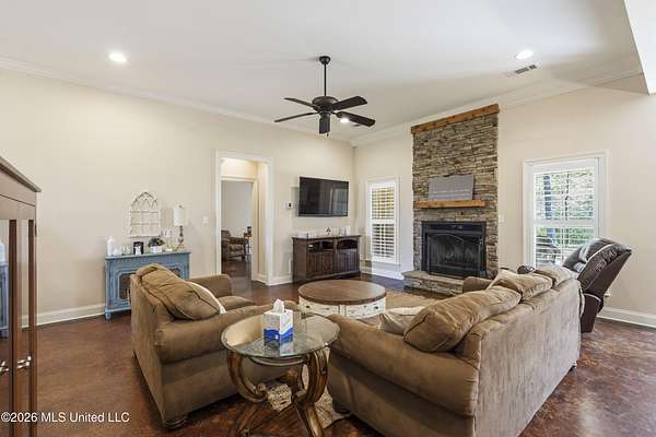 Welcome to this 11.64+- acre estate on Gaines Rd just south of Hernando. 6+- miles to the Hernando Square but just enough distance and space to have your private refuge. This move-in ready home offers two bedrooms on the first floor along with an open living area, great room fireplace, formal dining room, breakfast area and kitchen island. The kitchen offers built in oven and microwave, lots of cabinet and counter space along with a nice sized pantry. The master suite is spacious with two walk-in closets, large walk-in shower and jetted tub. An additional downstairs bedroom and bathroom is perfect for guests. Upstairs offers 3 bedrooms and a bathroom or it could be used as 2 bedrooms and a bonus/game room. The outdoor oasis has a private rear covered patio overlooking the back yard and the wooded acreage on the back half of the property. Plenty of woods and room for hunting and playing. The attached garage is spacious with a large storage area. In the back yard the shop is approximately 1600 Sq Ft and is wired for 220 and has two large doors to accommodate boats, tractors and all other outdoor equipment and toys. There is also a lean-to on the side for additional parking out of the weather. Seller will consider a flooring allowance if something other than stained concrete is preferred.