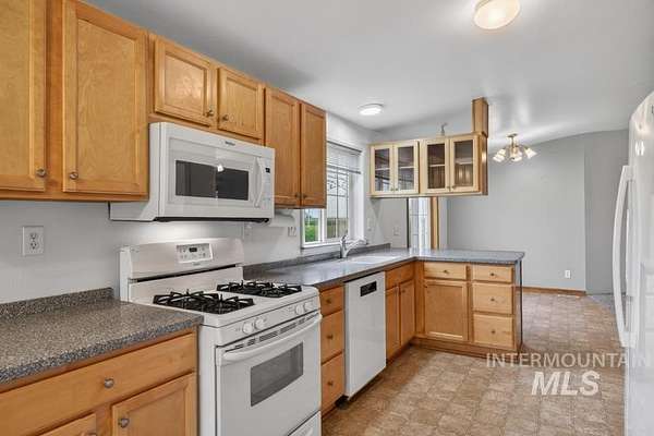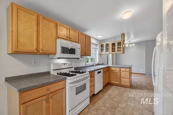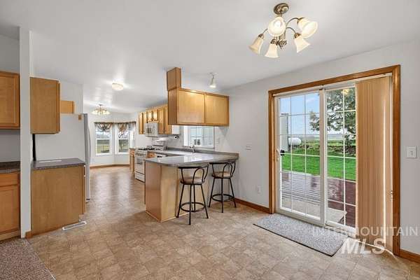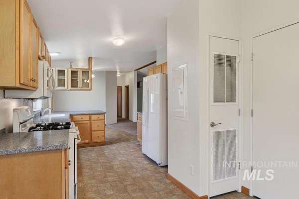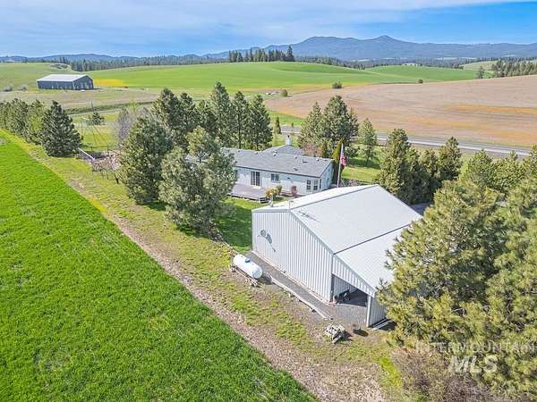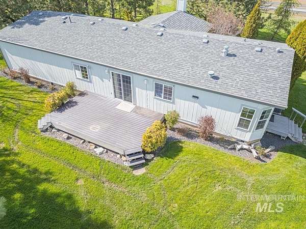 Meticulously maintained 1999 manufactured home on a permanent foundation with thoughtful additions throughout. This spacious property offers 3 bedrooms plus an office, including two primary suites-ideal for multi-generational living or added flexibility. A bright kitchen and dining area feature sliding doors that open to a composite-built back deck, perfect for indoor-outdoor living. The expansive living room showcases a cozy wood-burning fireplace and abundant natural light. Enjoy beautifully landscaped grounds complete with a full sprinkler system, fenced garden area, and fruit trees including cherry, apple, and plum, along with a thriving raspberry patch. Take in sweeping 360-degree views from this serene setting including both sunrise and sunset. The property also includes an impressive 960 sq ft shop with concrete floors, wood stove, and powered 8' and 16' doors, plus a 10x32 lean-to for additional covered storage.