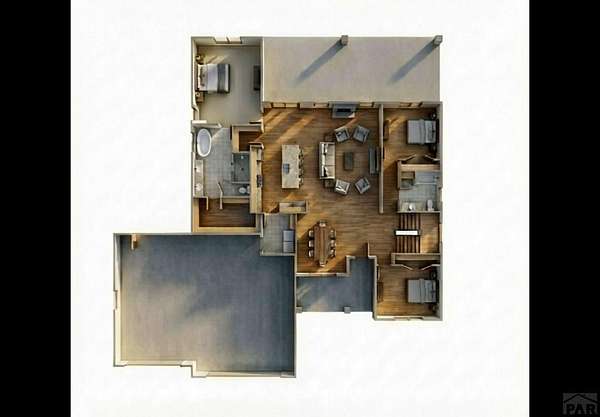 The Return of the Muley Model Completion in 90 days 6/15-an exceptional mountain modern custom build on 1.8 acres. Offered at $719,999 this luxury new construction backs to Turkey Creek with no rear neighbors, tucked into a quiet cul-de-sac with a massive covered rear patio designed for private outdoor living, while the front covered porch perfectly frames stunning south-facing views of Wet Mountains. This premier horse property offers 4,350 finished sqft, 5 bedrooms, 3 baths, vaulted ceilings, 9' main-level walls, 10' basement walls, and a thoughtful split-bedroom design. The chef's kitchen features a 36" gas range with hood, oversized double-stacked island, upgraded soft-close dovetail cabinetry with crown molding, custom tile backsplash, and upgraded flooring throughout. The main living space is anchored by a gas fireplace, while the finished basement delivers a full wet bar, expansive entertaining space, and large storage room. The primary suite offers a spa like 5-piece bath with freestanding tub and oversized dual-head shower. Both secondary baths include dual sinks. Additional upgrades include a large laundry room with sink and cabinetry, custom handrail, smart home prewire, tankless on-demand water heater, high-efficiency mechanicals, and central air. Finished in synthetic stucco and stone with premium black exterior/white interior windows, plus a 1,100 sqft fully drywalled garage with 9' doors and epoxy floors built for cars, boats, and workshop space. This is home!