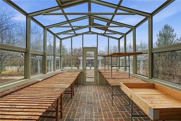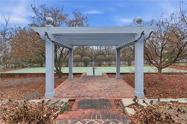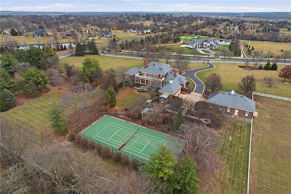 Welcome to this custom-built Fritzel retreat, nestled on over 9 magical, private, gated acres in desirable Paradise Farms. This extraordinary equestrian estate is a true work of art, blending timeless design, impeccable craftsmanship, and all the luxurious details you've been dreaming of. From the moment you arrive, the home's breathtaking curb appeal captivates with its elegant brick circular drive, lush, manicured landscaping, and commanding presence. Step inside to discover a spacious and thoughtfully designed floor plan adorned with soaring ceilings, intricate millwork, rich hardwood flrs,and architectural elements that exude both warmth and grandeur. The study is a masterpiece in its own right, featuring floor-to-ceiling walnut paneling, custom built-ins, and a true masonry frplce-a space that perfectly balances sophistication and comfort. The primary suite offers a spa-like ensuite with a soaking tub, his-and-her walk in closets, a steam shower, and delicate marble tops. Upstairs, you'll find 3 generously sized secondary bedrooms, each with ensuite baths and walk-in closets, thoughtfully designed to combine style and comfort. The heart of the home is the cheerful chef's kitchen. Outfitted with stainless steel appliances, a Sub-Zero refrigerator, custom inset cabinetry, a pantry, and double ovens, it's a space where both everyday meals and grand gatherings come to life. Step outside, and the magic continues. The exquisitely landscaped outdoor living areas feature a covered brick veranda, perfect for entertaining, a charming pergola, a serene fountain, and the rare bonus of a private tennis court and greenhouse. This outdoor oasis is designed for unforgettable moments and endless enjoyment. Additional highlights include a five-car grg w/epoxy flrs, a carriage house/heated barn with 3 horse stalls, an office, and 1/2bth. 5 fireplaces, 4 HVAC units, a SLATE rf, radiant heat, a generator, horse facilities, tack room, gazebo,a 100-gallon hot water tank&cstm lighting