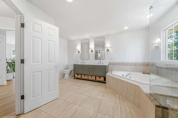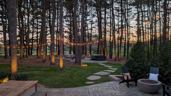 WELCOME HOME to this TRULY MAGICAL PROPERTY in the PRESTIGIOUS Hunt Club Woods subdivision. This property is ENTIRELY UNIQUE in so many ways, and you will not find anything else like it in the surrounding area. The first thing you will notice about this property is the GORGEOUS, old growth stand of pine trees that surrounds this home. Just imagine living in your own private woodland retreat surrounded by abundant nature and wildlife right in the middle of a well-established and highly sought after neighborhood. Stepping inside this home is like stepping into the pages of a Homes and Gardens magazine. This home has been meticulously updated with a modern, rustic flair that can be seen in almost every element including new high end, wide plank LVP flooring (2025), all new modern light fixtures inside and out (2023), and a bright contemporary color palette that will make you feel right at home. The true showstopper of this home is a luxury showroom quality kitchen that will simply take your breath away. Every detail in this space was meticulously designed to exude luxury and charm with an additional emphasis on form and functionality. Some of the many high end features of this SPECTACULAR space include counter-to-ceiling Bedrosians Marin Gloss Ceramic Tile in Aloe Green, floating shelves, custom cabinets with soft close and pull out drawers, gold accents/fixtures/pendants and sconces, luxurious quartz countertops, large island with seating and extra storage, Samsung bespoke appliances, touchless Kraus faucet on main sink- workstation single bowl sink with garbage disposal, RO system with glass filler faucet, dual zone beverage fridge, custom hood with touchless and remote controlled vent insert. Other updates and special features in this home include Dual Ecobee smart thermostats with Alexa voice and remote app control, hardwired landscape lighting throughout front and back yard, Arlo doorbell and MyQ garage, Rainbird sprinkler system and Bowers & Wilkins surround sound speakers in living room. Upstairs you will find 5 generous sized bedrooms including a very spacious primary suite featuring a walk-in closet with soft close drawers and pullout pant rack, a gas fireplace, seating area and an attached primary bath with separate tub and shower, dual sinks, updated light fixtures and GORGEOUS new vanity (2025). The real hidden gem of this property is your very own private and secluded pine forest. As you step outside it feels like you are stepping into an entirely different world with towering cathedral pine trees in every direction. This private backyard retreat comes with a newer stamped concrete patio (2023) with space for dining and lounging, poured concrete paver stones leading out into the forest where you will find another spacious stamped concrete patio, seating area and a hot tub. Just imagine dining al fresco at sunset as the sky is painted with a kaleidoscope of magnificent colors followed by a relaxing soak in the soothing waters of your woodland spa under a spectacular star filled sky with only the sound of a gentle breeze blowing through the trees and the occasional hoot from resident family of owls who can frequently be observed in this forest on a nightly basis. I cannot imagine a more relaxing way to end your day allowing all of your cares and worries to melt away. This very special place also allows you the opportunity for a little "Forest Bathing." Forest bathing, or shinrin-yoku, is a Japanese-developed, low-impact practice of immersing oneself in nature to improve health and reduce stress. It involves engaging all five senses in a forest environment to lower blood pressure, reduce cortisol, boost immunity, and enhance mental well-being. This home has so much to offer and there are far too many features to list. It is HIGHLY UNLIKELY that this very special place will last long. Come see it TODAY!