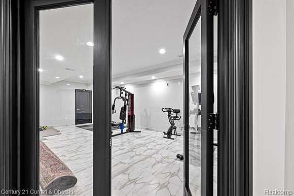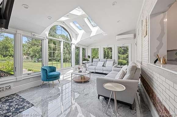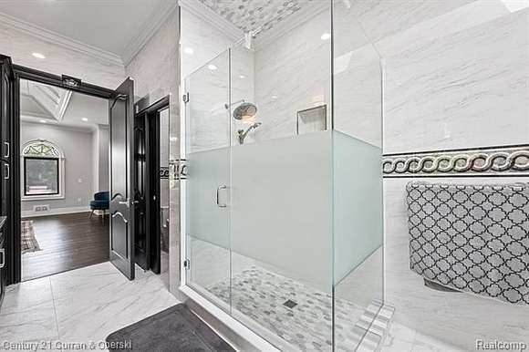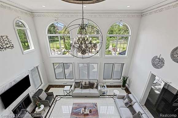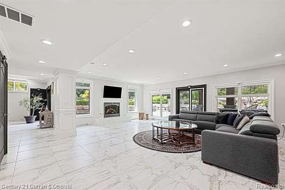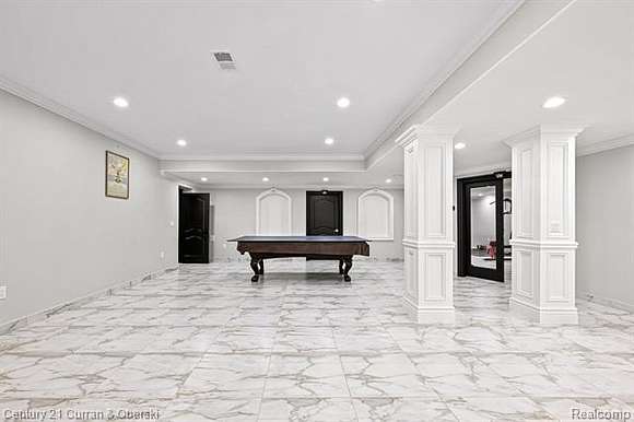 The luxury and detail to this exquisite home will astound you. The impressive drive through the private wrought-iron gates is just the beginning! Feast your eyes upon the gorgeous fountain and step up onto the expansive front porch to enter this masterpiece through custom double doors. Almost 11,000 square feet of space is laid out in front of you, with sunshine pouring in from every angle. Take note of the elegant curved staircase, beautiful inlaid marble floors flowing from room to room and custom moulding from top to bottom, including intricate ceiling design. The gourmet kitchen has all the upgrades you could desire, with plenty of seating to handle intimate gatherings to more formal affairs. Top-of-the-line appliances, oversized Quartz island, plentiful cabinet space and walk-in pantry make cooking a joy!! Take in all the grandeur of your surroundings either in the attached sunroom or outside patio, and marvel at the lush landscape, waterscape, gardens, brick-paver firepit and putting green! Seven spacious bedrooms are each accompanied by their own private luxurious bathrooms with more marble, exceeding your expectations. The finished lower level with walk-out is bright and sunny and can accomodate any entertaining comfortably with another full gourmet kitchen, playroom/billiard area, exercise room, another full bathroom, office space, and expansive storage area. Few will ever experience living in such a palatial estate with all it has to offer.