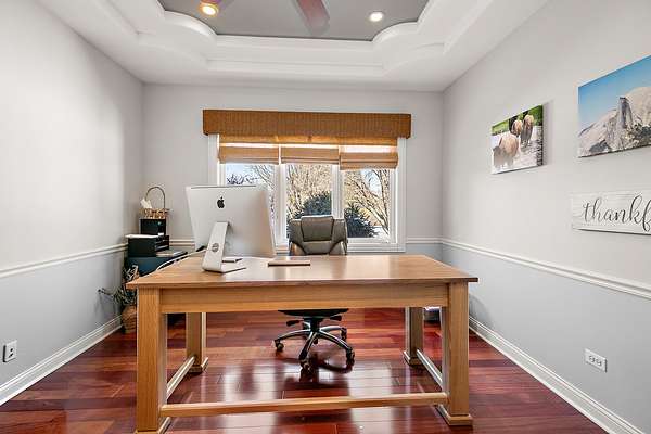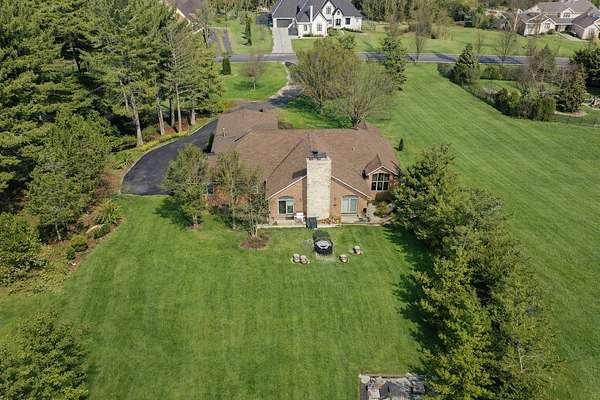 Nestled on 1.6 acres of serene, wooded privacy in the prestigious Hunt Club Woods, this 5776 SQ FT stunning all-brick ranch offers refined living with highly sought-after Homer Glen schools. Thoughtfully designed and impeccably maintained, this 4-bedroom (1 in basement) residence features a private office which can easily be converted into a fifth bedroom, 3.5 baths, and an oversized 3-car heated garage. The open-concept main level is highlighted by soaring cathedral ceilings, rich Brazilian hardwood floors, and two inviting fireplaces that create warmth and architectural interest. At the heart of the home is a beautifully appointed custom kitchen, showcasing high-end stainless steel appliances, a walk-in pantry, and a generous island-perfect for entertaining. The primary suite is a true retreat, offering vaulted ceilings, tranquil views of the private grounds, and a luxurious en-suite bath with a jacuzzi tub, travertine tile floors, and a spacious walk-in shower. On the opposite wing of the home, two additional generously sized bedrooms, an office, and a full bath provide privacy and flexibility for family or guests. The fully finished lookout basement with 9ft ceilings is an exceptional extension of the home, accessible from both the main level and the private entrance from the garage-ideal for related living or extended entertaining. This space features a full custom kitchen and bar, a gym/ 4th bedroom, home theater entertainment area, full bath with walk in shower, heated travertine tile floors, a masonry fireplace, tray ceilings, custom framing, soundproofing with blown insulation, and a thoughtfully designed layout for comfort and versatility. Built in 2004, major updates include a new roof approximately 6 years old, Furnace system (2022), AC (2020), a new driveway, and a heated garage. The patio is hot-tub ready with a dedicated 220-volt line, completing your views of the yard with over 130 trees. A true private outdoor living experience !!!! This is a rare opportunity to own this luxury ranch in one of Mokena's most desirable neighborhoods-offering space, elegance, and top-rated Homer Glen schools.
