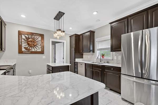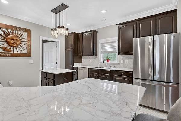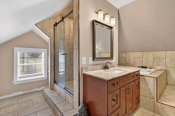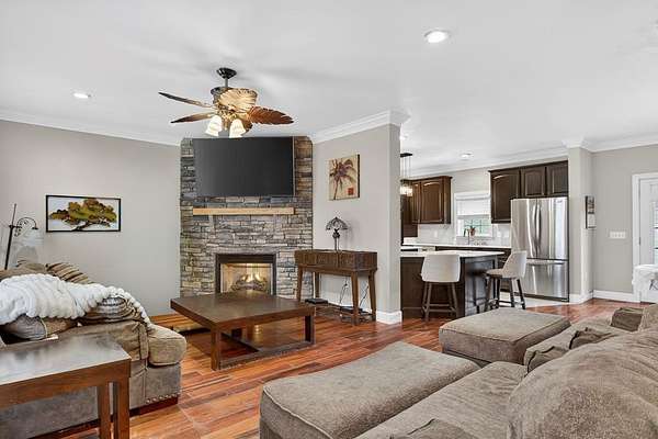 Experience country living at it's finest in this beautifully designed home set in a peaceful countryside. The cozy living room centers around a charming fireplace, creating the perfect gathering spot. The stunning kitchen boasts new custom Dekton countertops with new ceramic tile flooring. The kitchen is fully equipped with stainless steel appliances, including a refrigerator, dishwasher, stove, and microwave. An open floor plan seamlessly connects the kitchen, dining area, and living room, making it an excellent space for entertaining. The floors in the living area are 3/4" solid Tigerwood hardwood. From the dining area, enjoy a peaceful view of the countryside through French doors that open onto a Trex deck-ideal for relaxing or hosting guests. The main-level primary bedroom offers comfort and convenience with full ensuite bathroom featuring a full bath with dual sinks, and a spacious walk-in closet. A second bedroom is also located on the first floor, just steps away from another full bathroom. Upstairs, you'll find a generously sized bedroom with its own ensuite bath, complete with an updated tub and shower. The floors in all bedrooms are pre engineered bamboo. The second level also hosts an bonus room that could be a second living room space or entertainment area. This house is located on 4.34 acres. Despite the secluded feel, this property is just minutes from Abingdon's historic downtown shopping, dining, and theater options. Enjoy the perfect balance of quiet country living with modern convenience-schedule your tour today.