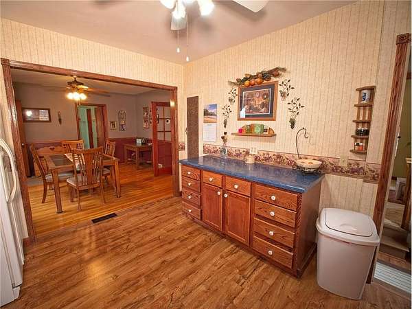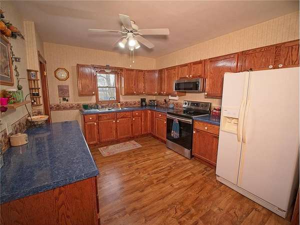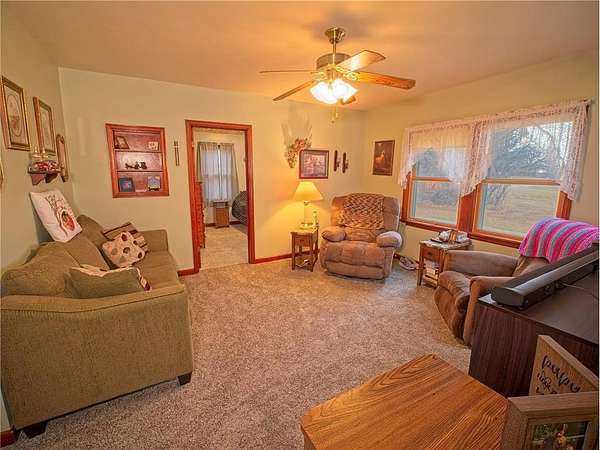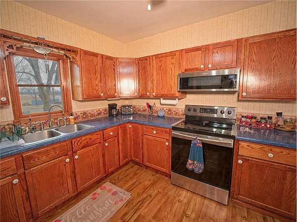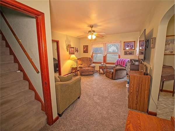 Ideal country home on 2 acres just five minutes north of Hutchinson, offering peaceful living with convenient access to several nearby lakes. This spacious property features 4 bedrooms plus a den and 2 bathrooms, with original hardwood floors adding warmth and character. The large primary bedroom includes a walk-in closet, and recent exterior updates include newer maintenance-free siding with added insulation and a new roof within the past two years. The furnace was replaced just 3 months ago for added peace of mind. The unfinished basement offers a versatile space with endless potential, perfect for storage, a workshop, home gym, or future finished living area. Enjoy the beautiful, mature lot complete with four apple trees. Additional highlights include an attached one-stall garage and an impressive 50x22 insulated shop with a wood stove—perfect for hobbies or extra storage. The septic system is scheduled to be updated this spring, weather permitting.