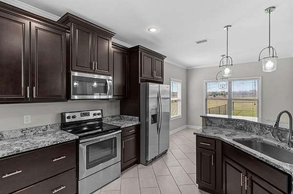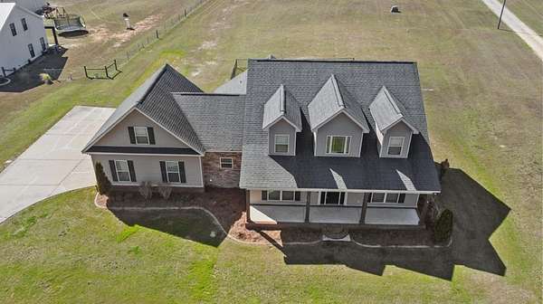 RARE two story home on acreage in Rehobeth. Situated on two unrestricted acres just minutes from Rehobeth High School with easy access to US 231, this custom built 2,539 sq ft Craftsman offers space, style, and freedom with no HOA. A welcoming front porch leads into a foyer highlighted by a stunning glass chandelier and elegant staircase. The spacious living room features a cozy gas fireplace and flows seamlessly into the kitchen with granite countertops, stainless steel appliances, large pantry, and wraparound bar ideal for casual seating. A bright breakfast area overlooks the backyard, while a separate dining room provides space for gatherings. The main level primary suite offers comfort and convenience with a generous bedroom, tiled walk in shower, relaxing garden tub, and oversized walk in closet. A mudroom and guest bath are thoughtfully located near the garage entry. Upstairs, two oversized bedrooms feature expansive walk in closets and additional storage. The full bath includes a separate shower, soaking tub, and picture window with backyard views. The oversized garage accommodates trucks and SUVs and includes a mini split and access to the Rain Bird irrigation system. Above, a large bonus room with its own new mini split offers flexible space for an office, gym, or media room. Enjoy a screened back porch, fenced area for pets, and ample room to expand, park an RV, or add a workshop. Convenient to Publix, Flowers Hospital, and a short drive to Panama City Beach.