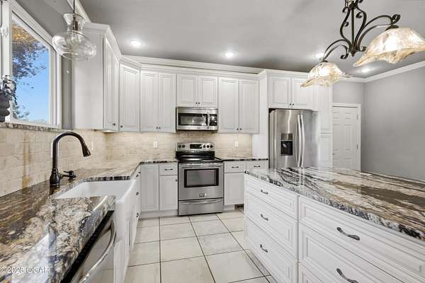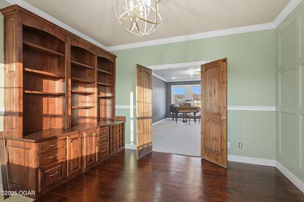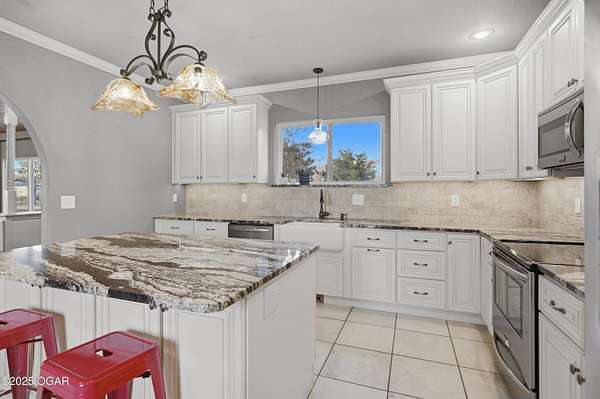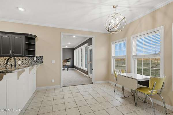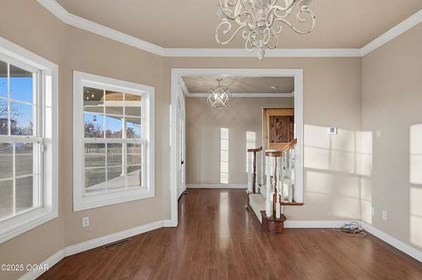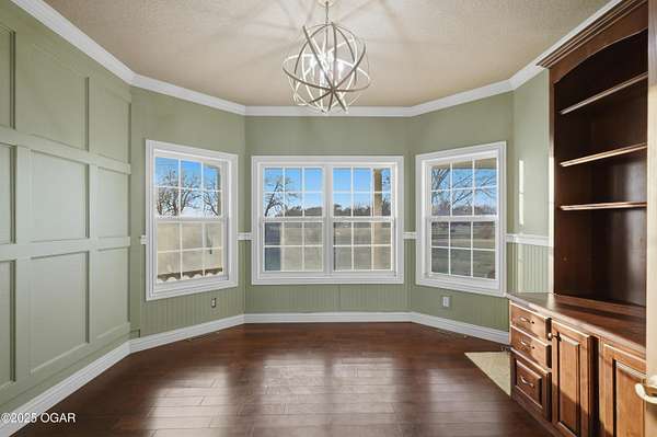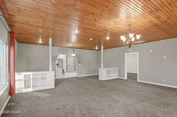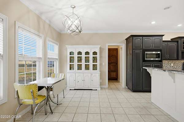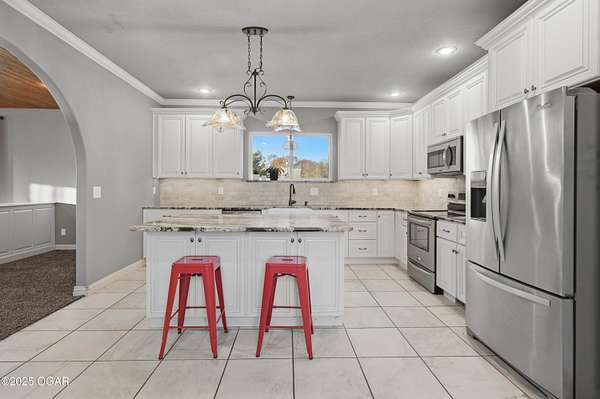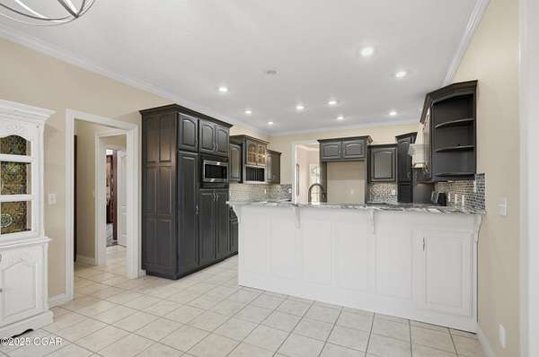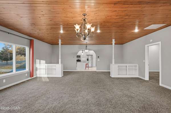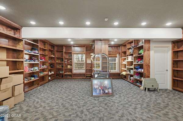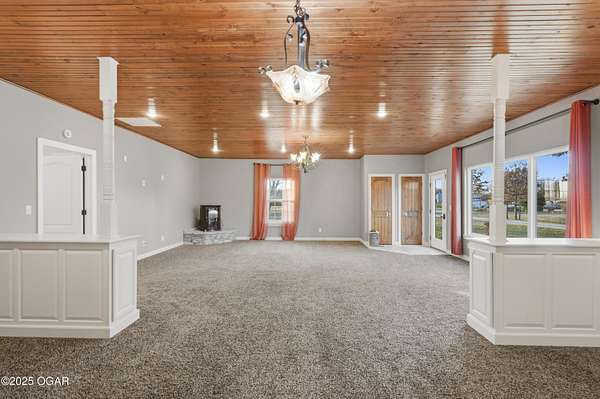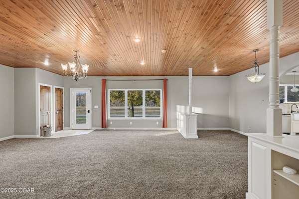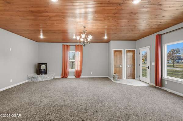 Tucked quietly along Hottel Springs Road on the outskirts of Seneca, this home rises from the trees with a kind of grounded confidence-substantial, inviting, and beautifully unexpected. A long covered porch welcomes you inside, and the moment the front door opens into the foyer, the tone is set: this is not just a home with space... it's a home with presence. The original heart of the home unfolds first, warm and thoughtfully designed. The main kitchen stands out immediately-rich dark grey cabinetry, deep granite countertops, and stainless appliances that give the space a modern, moody sophistication. It's the kind of kitchen that feels both polished and lived-in, where morning routines settle naturally and evenings gather without effort. Beyond it, the cozy living room rests beneath soft natural light, anchored by a stone hearth and wood stove that radiates comfort through the colder months. A dedicated office lines one wing, complete with custom built-ins that make work, study, or creative projects feel purposeful. A separate library sits tucked away-floor-to-ceiling shelving, warm tones, and the quiet charm of a room made for thinking, reading, or escaping. Throughout this part of the home, the craftsmanship is unmistakable. Storage appears where you need it, room transitions feel intentional, and every hallway guides you to another space that seems designed for someone's next chapter. Then, through a subtle transition that feels seamless rather than new, the home opens into its most breathtaking space: the 2023 addition. The moment you step inside, the ceiling lifts into a sweeping stretch of tongue-and-groove wood, glowing softly in the natural light. The room feels expansive and peaceful all at once-easily large enough for gatherings, celebrations, movie nights, or quiet mornings that stretch a little longer than planned. This addition includes a full second kitchen, finished in bright white cabinetry, stainless appliances, and a large granite island that centers the room. It's a contrast to the dark grey of the main home-fresh, open, and airy-giving the entire wing a sense of independence and possibility. Whether used for extended family, hosting long-term guests, a college kid home for the summer, or simply extra space for a busy household, this second living quarter is a luxury you can feel in the flow of the home. With over 5,500 square feet, five bedrooms, and three-and-a-half baths, the home manages to feel expansive without ever feeling overwhelming. Each room has its own character. Each space has a clear purpose. And together, the original home and the 2023 addition create a layout that supports multigenerational living, blended families, dual households, home-based work, or simply anyone who values space and connection without sacrificing privacy. Outside, the 2.23-acre property offers the same sense of quiet possibility. The koi pond catches the sunlight near the porch, adding movement and softness to the landscape. Mature trees frame the yard in every season, the land stretches open and usable, and a circle drive makes arriving feel effortless. The detached 40x30 shop stands ready for tools, woodworking, hobbies, side projects, equipment storage, or a small business setup. Evenings settle gently here. The porch lights glow. The land quiets. The home feels like it exhales. And for a moment, you can imagine what life could look like in a place built to hold every season-every gathering, every milestone, every quiet day in between. This is more than a large home. It's a place to grow into. A place that adapts with its people. A place where every chapter fits. Welcome to 17981 Hottel Springs Road. Your next story starts here. AI Generated Staging/Edited Photos Photos Edited: 1, 5, 26, 28, 63, 64 (Clutter Removed)