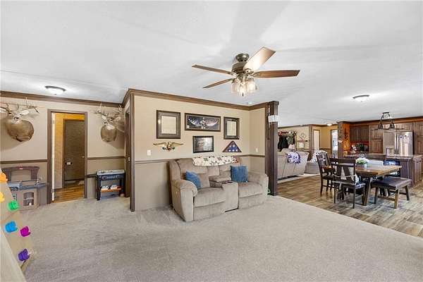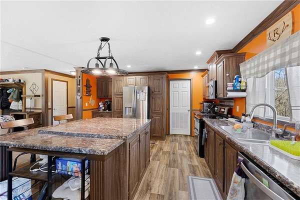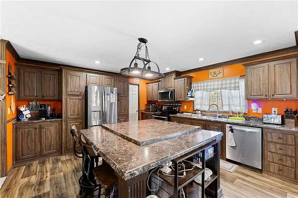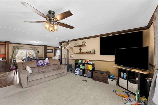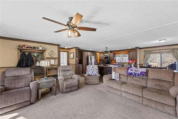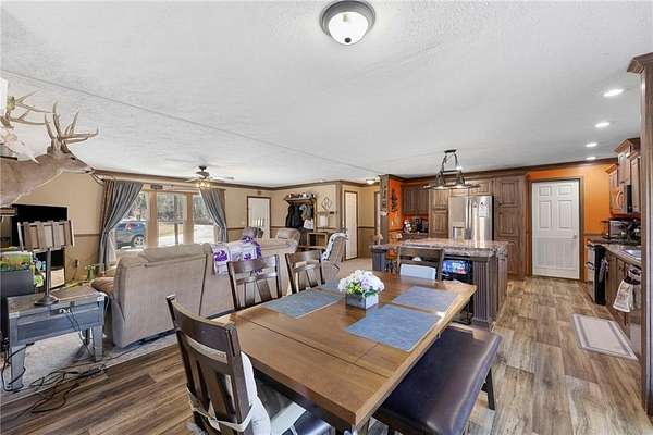 Set on 21 breathtaking acres, this 4-bedroom, 2-bath home offers a rare combination of space, privacy and natural beauty. The land is truly the star here- featuring three ponds, trees, hunting and fishing opportunities, and trails, creating a peaceful retreat-like setting that's hard to find. The 2,280 sq ft home (2016) offers a functional and spacious layout with two living areas, including a second living room with a wood-burning fireplace. Big kitchen island, great for entertaining! The large primary suite is a true retreat, featuring a walk-in closet and private bath with double vanity, soaking tub, and separate shower. The hall bath offers dual sinks and a private tub/shower & toilet room. Dedicated laundry room and a large pantry. Deck off the dining area, perfect for enjoying the surrounding views. Most of the windows and all exterior doors were replaced in 2022 (Pella brand). Completing the property is a 32x24 detached garage with concrete floor and electric. With abundant wildlife, ponds and room to roam, this property delivers a lifestyle. If you've been searching for acreage, privacy and natural beauty - this is a must-see.