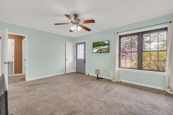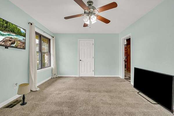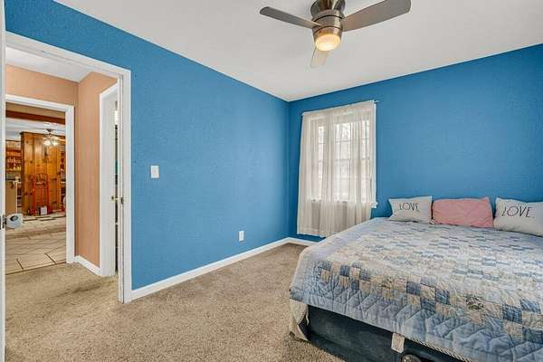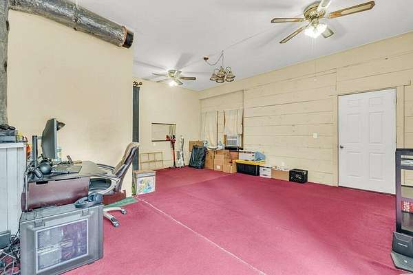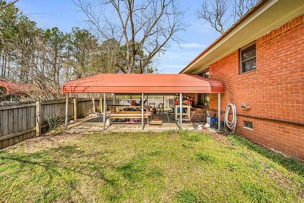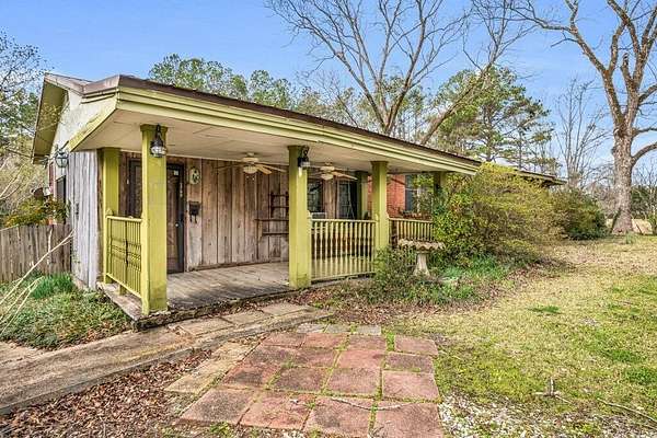 Est $653/moCharming three bedroom home on 5 acres with a usable pasture, covered front porch with swing, and a privacy fenced backyard with covered concrete patio. Includes living room, kitchen/dining, hallway bath, H&C storage attached, utility room, and a powered trailer workshop. Perfect for hobby farming, projects, and outdoor living.