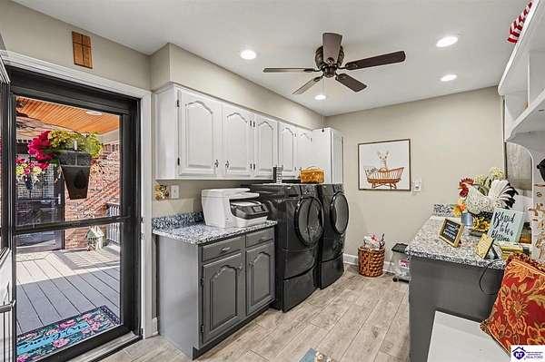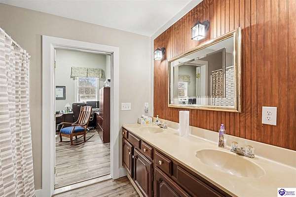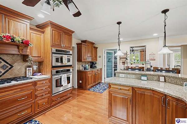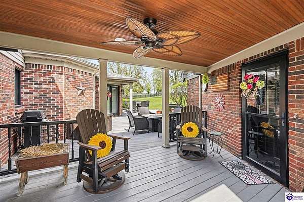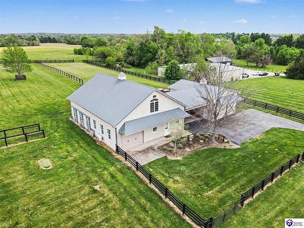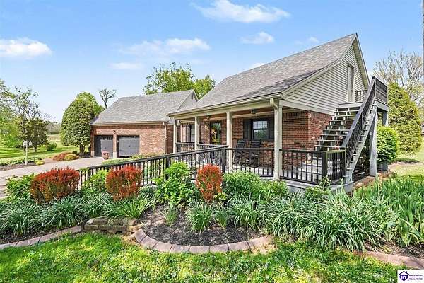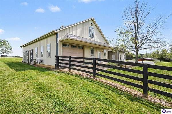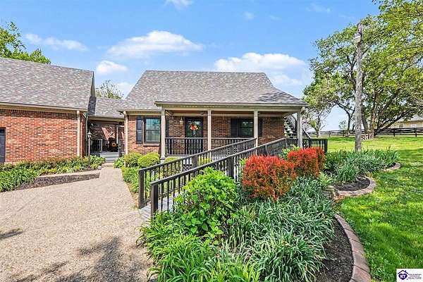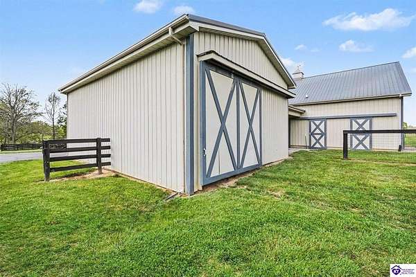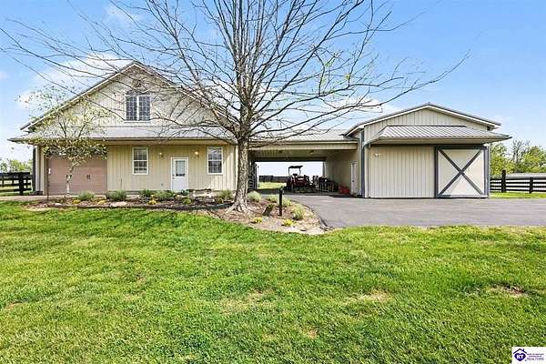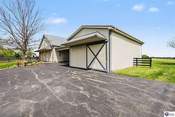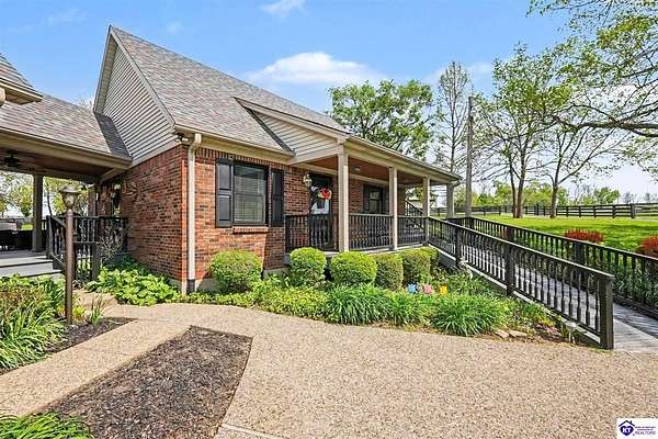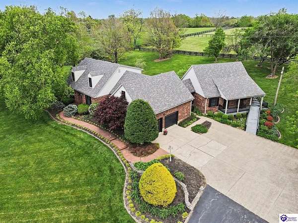 Welcome to a truly exceptional 5.07 acre estate offering space, versatility, & endless possibilities in the heart of Shelby County. Nestled in Simpsonville just minutes from the Outlet Shoppes, downtown Shelbyville, & everyday conveniences, this unique estate is designed for the way people live today, whether multigenerational living, working from home, or enjoying land & livestock. The main residence features 3 bedrooms & 2.5 baths with a thoughtfully designed layout blending comfort & functionality. The main level offers a spacious primary suite with walk-in closet & private bath, a beautifully appointed great room with gas fireplace, formal dining room, & a den perfect for a home office or flex space. The chef’s kitchen includes granite countertops, a large bar area, & a separate butler’s pantry with walk-in storage, ideal for everyday living & entertaining. A convenient laundry area & half bath are located just off the kitchen. Upstairs are two additional bedrooms & a full bath. Connected by a covered portion of the deck, the private guest house (ADU) offers a complete second living space with its own bedroom, full bath, kitchen, living area, & laundry, perfect for extended family, guests, or potential income. A ramp provides accessibility, plus additional upstairs storage. The property also features a well-equipped barn with stalls, a fully heated & air-conditioned office with full bath, & an upper level that could be finished for additional space. Previously home to prize-winning alpacas, the land is fully fenced with blackboard fencing & lush pastures seeded with orchard grass. Additional highlights include 4 HVAC units (2 main house, 1 ADU, 1 barn office mini split), encapsulated crawl spaces for energy efficiency, handicap accessible guest house with zero entry shower, Trex decking, buried propane tank, dedicated landscaping spigot, & a large barn with office, storage, stalls, & expansion potential. Professionally landscaped & thoughtfully maintained, this property offers beauty, usability, & flexibility for a private retreat, multigenerational living, or lifestyle with income potential.