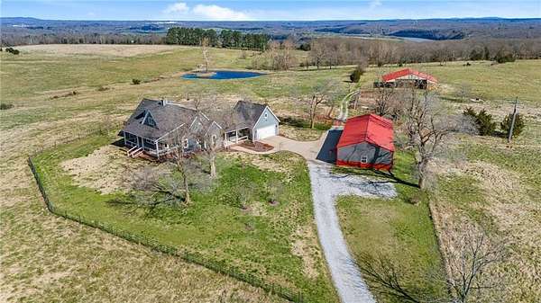 Exceptional 120-Acre Fayetteville Estate with Unmatched Views. Experience one of Northwest Arkansas’ most remarkable properties—120 acres of pristine, cross-fenced pastureland paired with a beautifully crafted custom home overlooking Fayetteville. This 3,096 sq ft residence offers 3 bedrooms and 3 full bathrooms. The home features 6” exterior walls and cellulose insulation, delivering superior energy efficiency and year-round comfort. Predominantly open pasture, it’s ideal for cattle, horses, or recreational use. A custom-built, stocked pond with a dedicated fishing landing, with multiple additional ponds. 40’ x 70’ heated and insulated shop with three open bays and two garage doors