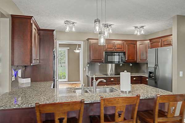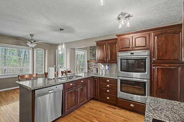 - Built-In Electric Range, Dishwasher, Double Oven, Microwave, Refrigerator, Stainless Steel Appliance(s)