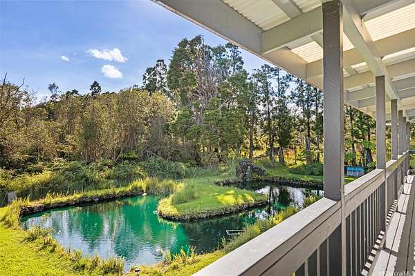 Experience Ultimate Off-Grid Luxury on 5 Acres of Fully Fenced Prestigious Parcel in Glenwood on Big Island Hawaii. Stunning 80,000-Gallon UV-filtered Fish Pond & Waterfall make this Private Lush Estate a one-of-a-kind. Double-Walled home with Spacious Floor Plan designed to accentuate the Views of Your Nature Oasis! Fully Solar Powered with 24 Panels, Inverters, Batteries & a remote 10 kW Isuzu Generator for Backup plus a reinforced potable catchment system & pressure pump. A 20'x30' greenhouse, 1,120 sf garage with ample storage that connects to the 880 sf carport / boat port. There is a goat shed, aviary & dog kennel perfect for farming or homestead living. Landscaping of this Level & Curated Lot includes beautiful native and exotic flowers & plants. Inside, discover T&G vaulted ceilings, solid oak cabinetry, gas on-demand water heater, pellet stove & massive covered wrap-around lanais on both levels-perfect for soaking in the beauty of the pond & property! This off-grid sanctuary combines serenity, sustainability & the Legacy Living Opportunity that you've dreamed of!