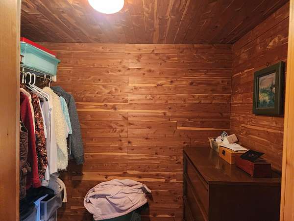 - Beamed Ceilings, Cedar Closet(s), Ceiling Fan(s), High Ceilings, Jetted Tub, Natural Woodwork, Open Floorplan, Vaulted Ceiling(s), Walk-In Closet(s)