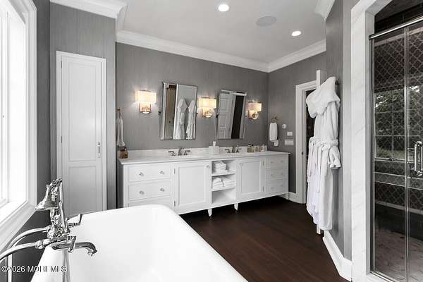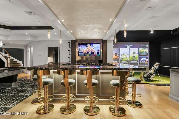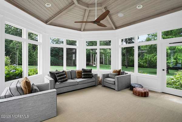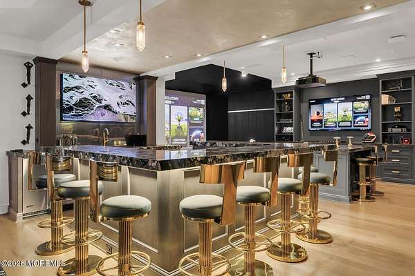 The ultimate entertainers paradise. Welcome to a private resort-style sanctuary like no other. Set behind gated entry on 3 manicured acres in one of the area's most coveted enclaves, this extraordinary estate has just completed a breathtaking three-year, $3 million transformation. Offering over 9,200 sq. ft of finished living with a walk-out lower level - Every inch of this move-in-ready masterpiece was thoughtfully reimagined to deliver unmatched luxury, seclusion, and year-round resort-style living. More than $1 million was invested in the grounds alone to create an atmosphere that rivals a five-star resort. At night, architectural lighting illuminates the estate's trees, driveway, and residence, transforming the landscape into a serene evening retreat. The rear grounds are anchored by a resort-style pool and outdoor kitchen, surrounded by bluestone terraces. Inside, the home has been reimagined to the highest standard. Every surface has been refinished, including paint, wallpaper, flooring, lighting, and architectural millwork. Over 4,000 square feet of space--including the entertainment complex, custom gym, and luxurious spa--was taken down to the studs to allow for complete redesign. Custom railings and staircases were installed to elevate the flow between levels, while custom leather-wrapped walls and designer finishes lend the home a sense of modern sophistication. The formal office makes a bold statement with rich leather-wrapped walls, motorized shades, curated lighting and integrated AV systems. The kitchen, living, dining, and family rooms flow seamlessly with upgraded lighting, sound systems, custom cabinetry, and refined wall treatments, all designed to support both everyday living and upscale entertaining. The crowning jewel of this home is the all-new, 3,000-square-foot walk-out lower level, crafted as a $1.1 million entertainment complex. Every detail was envisioned to create an elite private club experience. The entry to the space was transformed with statement millwork and lighting. The lower level includes six Sony flat panels, two Sony projectors with custom-fitted screens, acoustically treated ceilings with soundproofing throughout, and Savant-controlled automated lighting and sound systems. This unrivaled complex features a Dolby Atmos movie theater with SonusFaber's highest-spec audio, tiered seating for ten, in-seat and in-wall subwoofers, and cinema-grade lighting. A custom-designed Trackman Golf Simulator room offers built-in acoustic millwork and Sony projection technology. The bar--an impressive 16-foot statement piece--is finished in granite with seating for eight, pendant and under-bar lighting, flat panel display, ice maker, and refrigeration. The catering kitchen is equipped with Sub-Zero refrigeration, custom cabinetry, and granite countertops. The home's spa experience rivals that of the finest luxury resorts and was completely rebuilt from the ground up to create a tranquil, Aman-inspired retreat. The gym was also completely reconstructed with brick accent walls, dedicated HVAC and ventilation, and professional lighting, and is anchored by an 85-inch flat panel with integrated sound bar and hidden surround sound, and even includes a discreet lounge/office area for post-workout relaxation or remote work. A seemingly endless list of amenities, right at your fingertips. This one is a must see. Minutes to NY Ferry, beach, A+ schools and more.