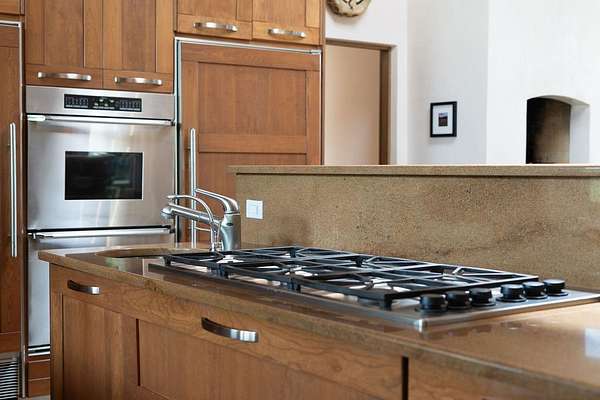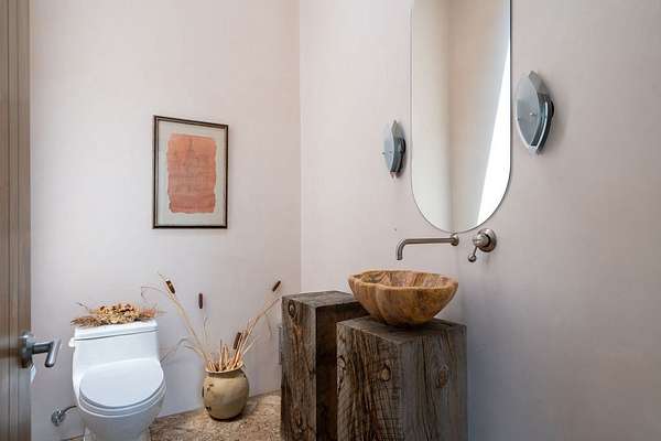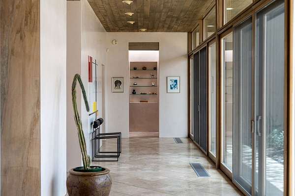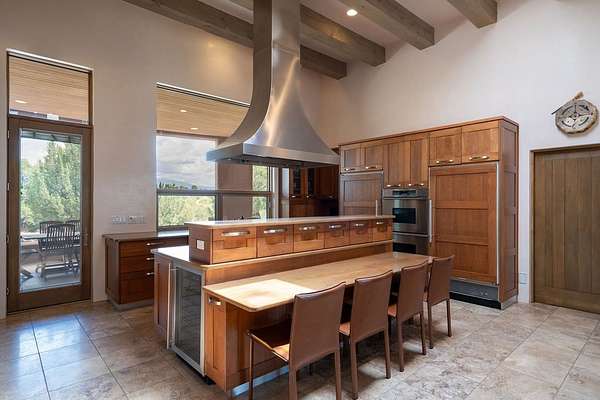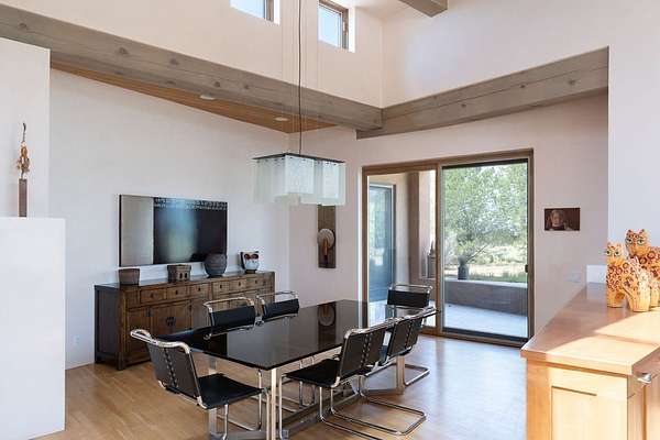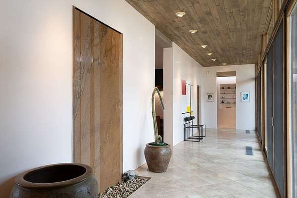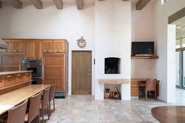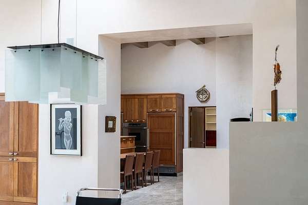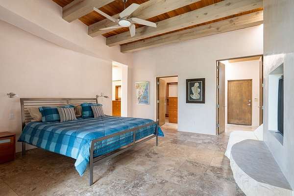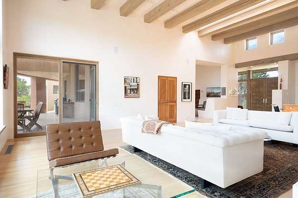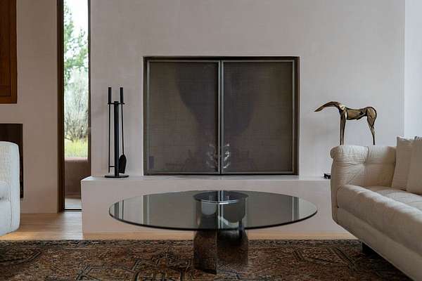 Step into this extraordinary Las Campanas residence where modern design and tranquility adjoin. Nestled on 2.3 acres, this 3-bedroom 3 1/2 bath home exemplifies sophistication and style. Upon entering, you are greeted by a dramatic gallery hall with luxurious stone water feature. The main room floods with natural light, highlighting an inviting open-concept floor plan. An expansive gourmet kitchen offers a well-designed central island and cozy sitting area, a footprint that is both spacious and comfortable. High-end appliances and design features throughout the home are accented by tall ceilings and clean lines. The primary bedroom features a fireplace, two expansive walk-in closets, and a luxury bathroom with dual vanities, soaking tub, and walk-in shower. The guest wing contains two spacious guest rooms, each with ensuite bath, providing exceptional comfort and privacy for visitors. Entertaining is effortless with a patio designed for outdoor dining and leisure, framed by courtyard walls with space to dine al fresco while taking in the tranquil surroundings. A spacious 3-car garage adds to the exceptional features of the home. Landscaping is in need of a refresh with an interior courtyard that offers tremendous potential. Seller's golf membership to the Club at Las Campanas is available to the purchaser of the property at an additional cost.