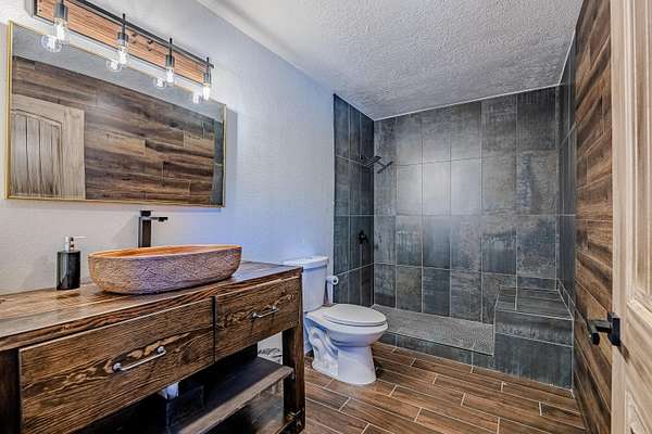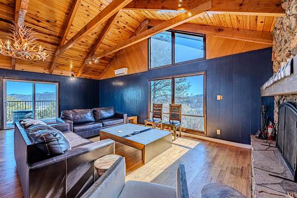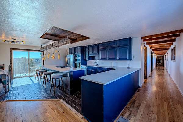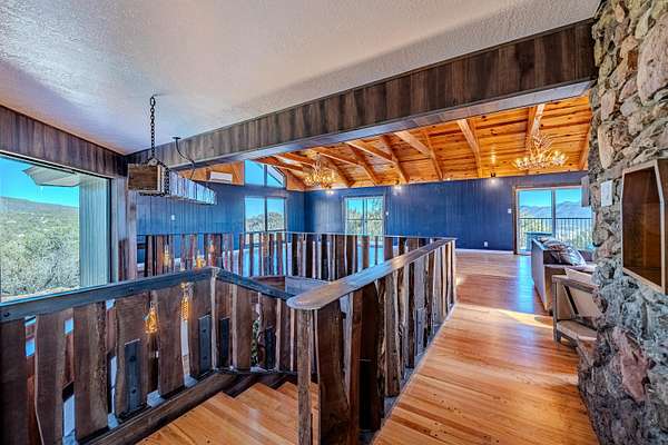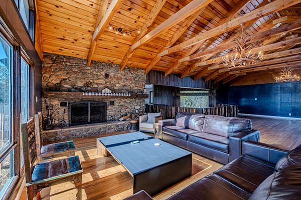 Welcome to 18 Calle del Caballo in Sandia Park, a stunning 5,100+ sq ft mountain retreat with panoramic views in every direction. This lodge-style home features a dramatic great room with soaring ceilings and a massive stone wood-burning fireplace as its centerpiece. Extensively remodeled, it offers a new ProPanel metal roof, recently installed high-efficiency HVAC system, custom features, and designer lighting throughout. Spacious living areas blend rustic charm with modern comfort. Enjoy three expansive decks perfect for entertaining or relaxing while taking in the surrounding mountains. A rare opportunity to own a beautifully updated mountain estate.