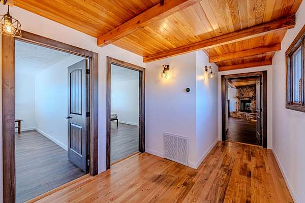 - Beamed Ceilings, Breakfast Bar, Ceiling Fans, Entrance Foyer, Great Room, High Ceilings, Main Level Primary, Multiple Living Areas, Walk In Closets